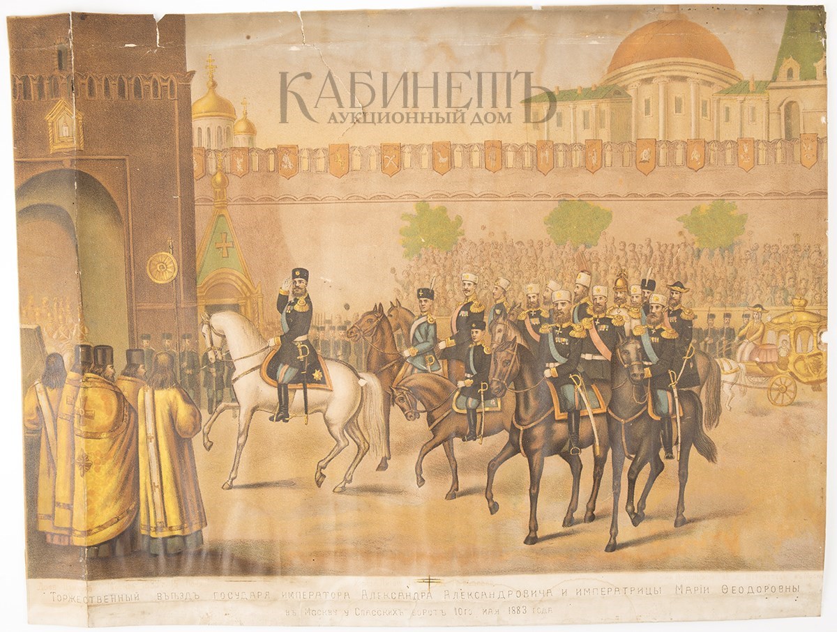 Торжественный въезд Государя императора Александра Александровича и императрицы Марии Федоровны в Москву у Спасских ворот 10 мая 1883 года.