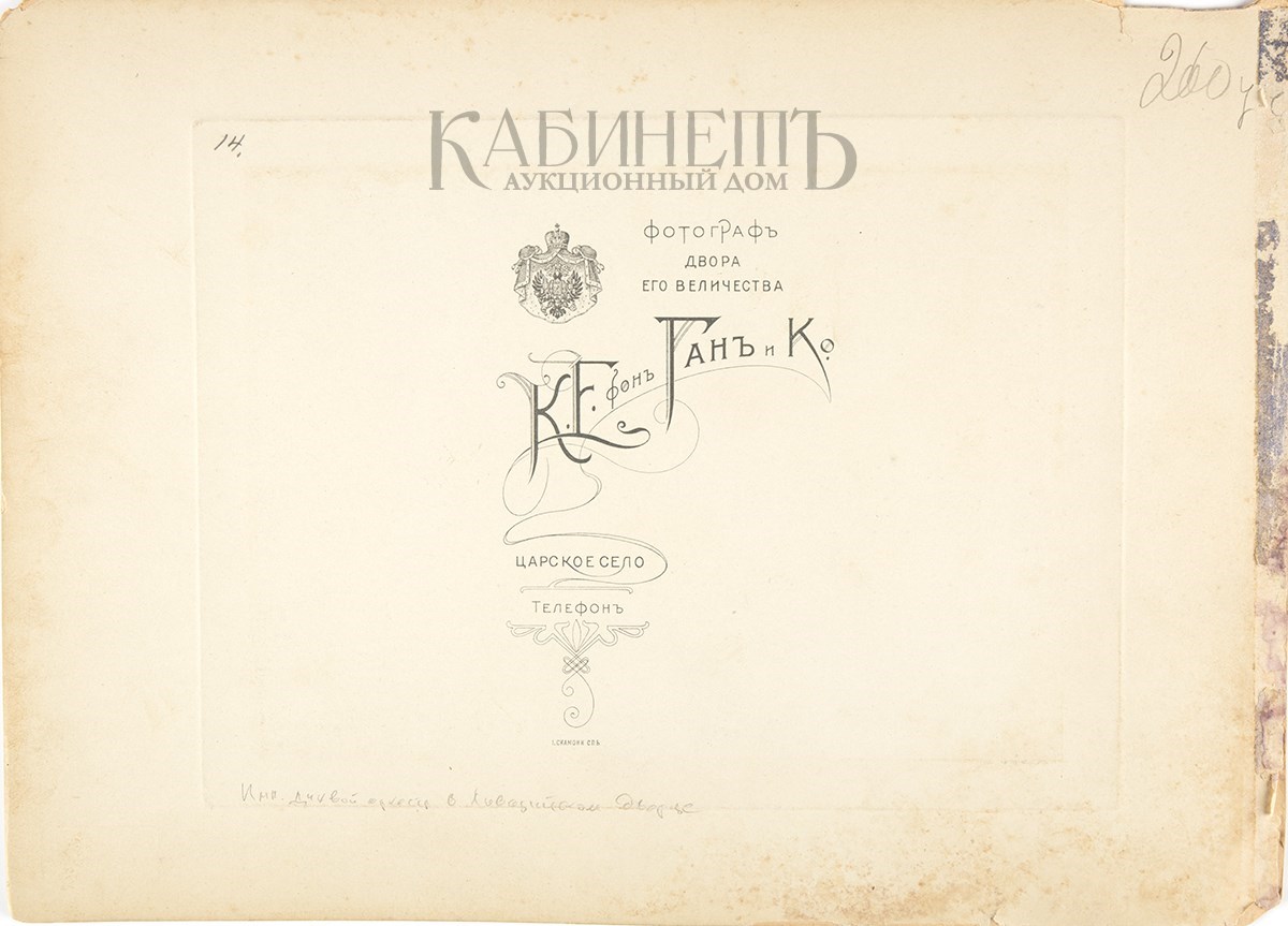 Фотография наклеена на фирменное паспарту фотоателье «К.Е. фон Ган и Ко»