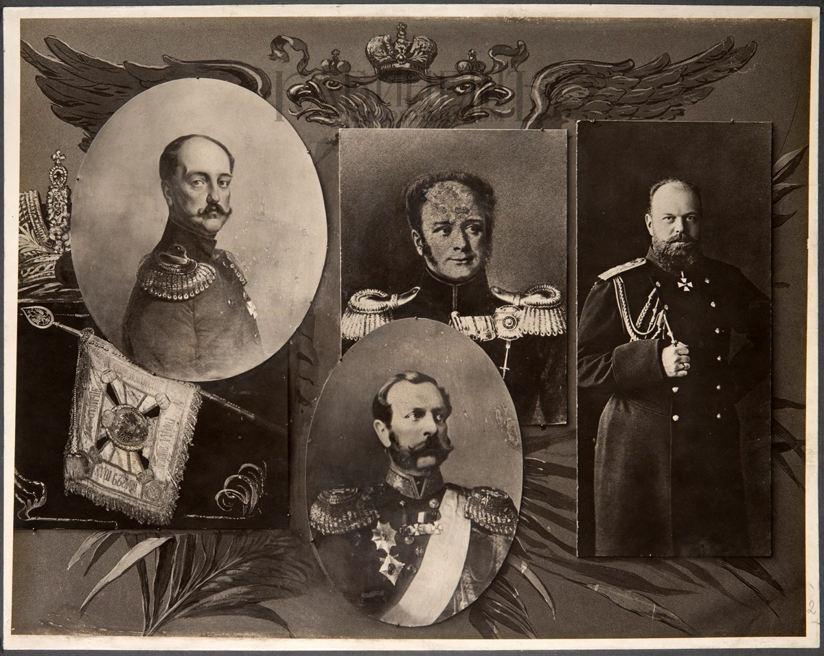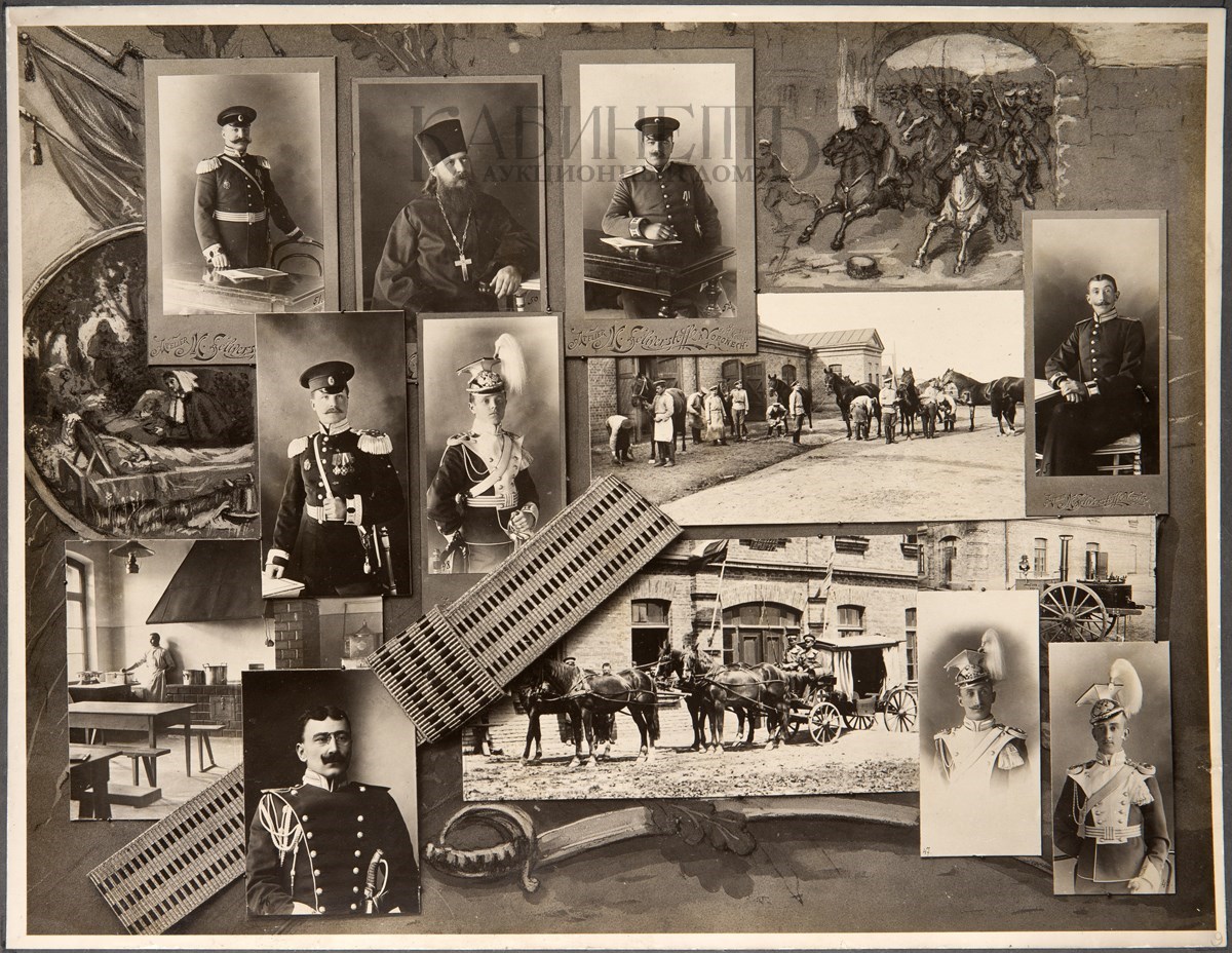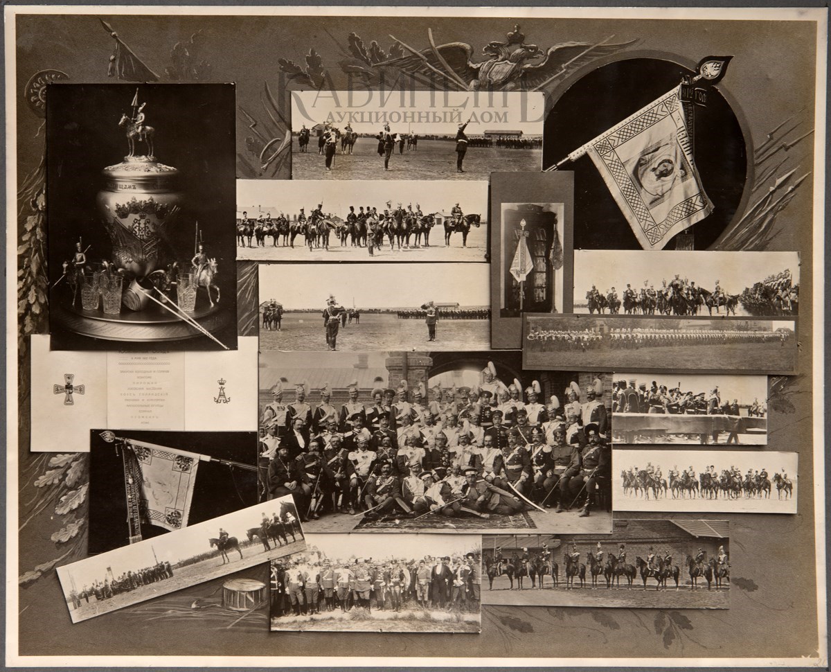 [Альбом из 21 фотоколлажа]. Ольвиопольские Уланы 1812 –1912 года. [М.], печатня С. П. Яковлева, [1912].