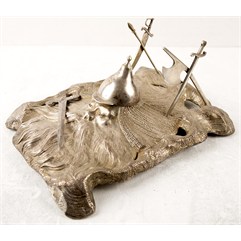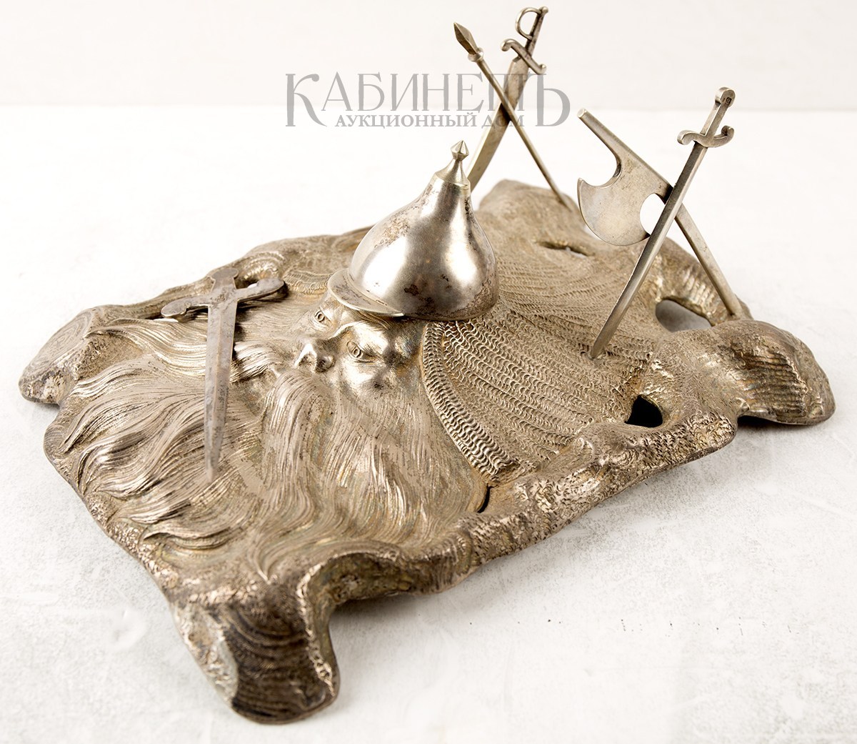 Письменный прибор «Голова богатыря» из трех предметов: чернильница, нож для разрезания бумаг, пресс-папье