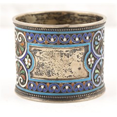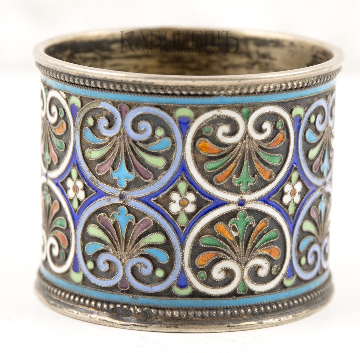 Клейма: на лицевой стороне на ободке вверху – пробирное «84» с женской головкой в кокошнике, повернутой влево, с инициалами пробирного инспектора «ИЛ», именник «НК» в ромбовидном щитке.