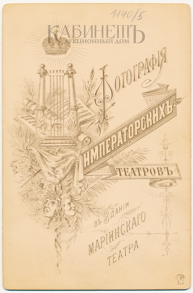 Фотография наклеена на фирменное паспарту Фотографии Императорских театров в здании Мариинского театра.