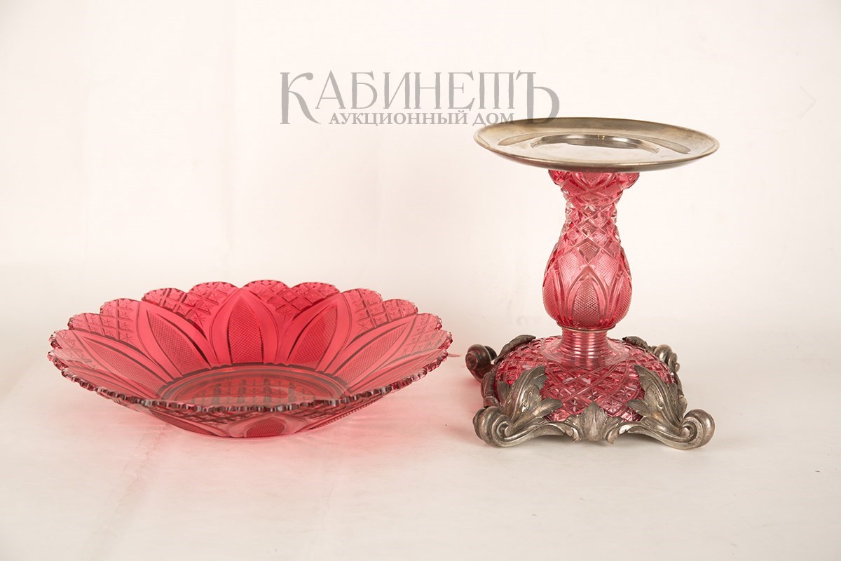 Стекло «золотой рубин», бесцветное, грани алмазом, шлифовка, серебро