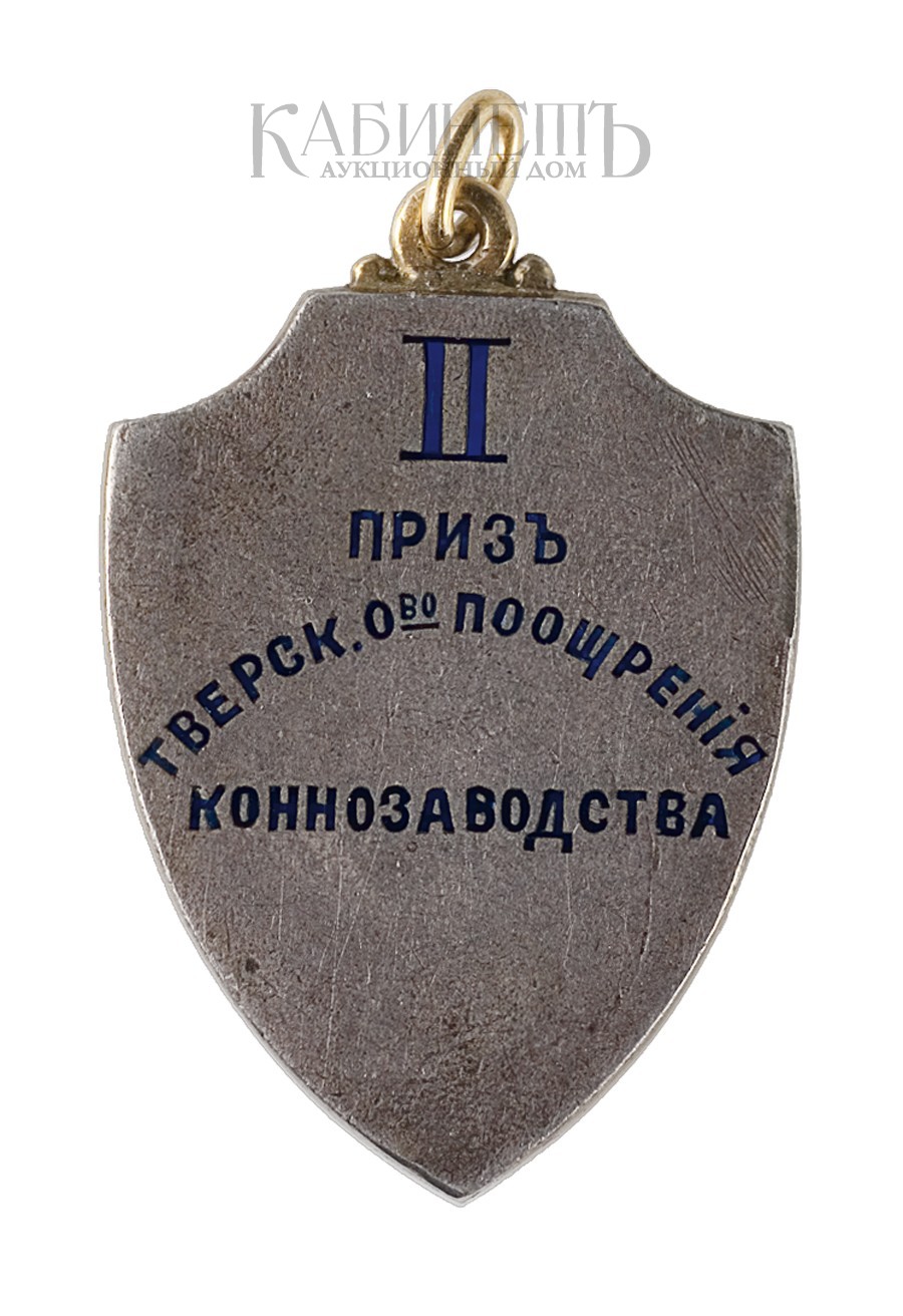 На оборотной стороне надпись в четыре строки: «II /Призъ / Тверск. О-во поощренiя / коннозаводства».