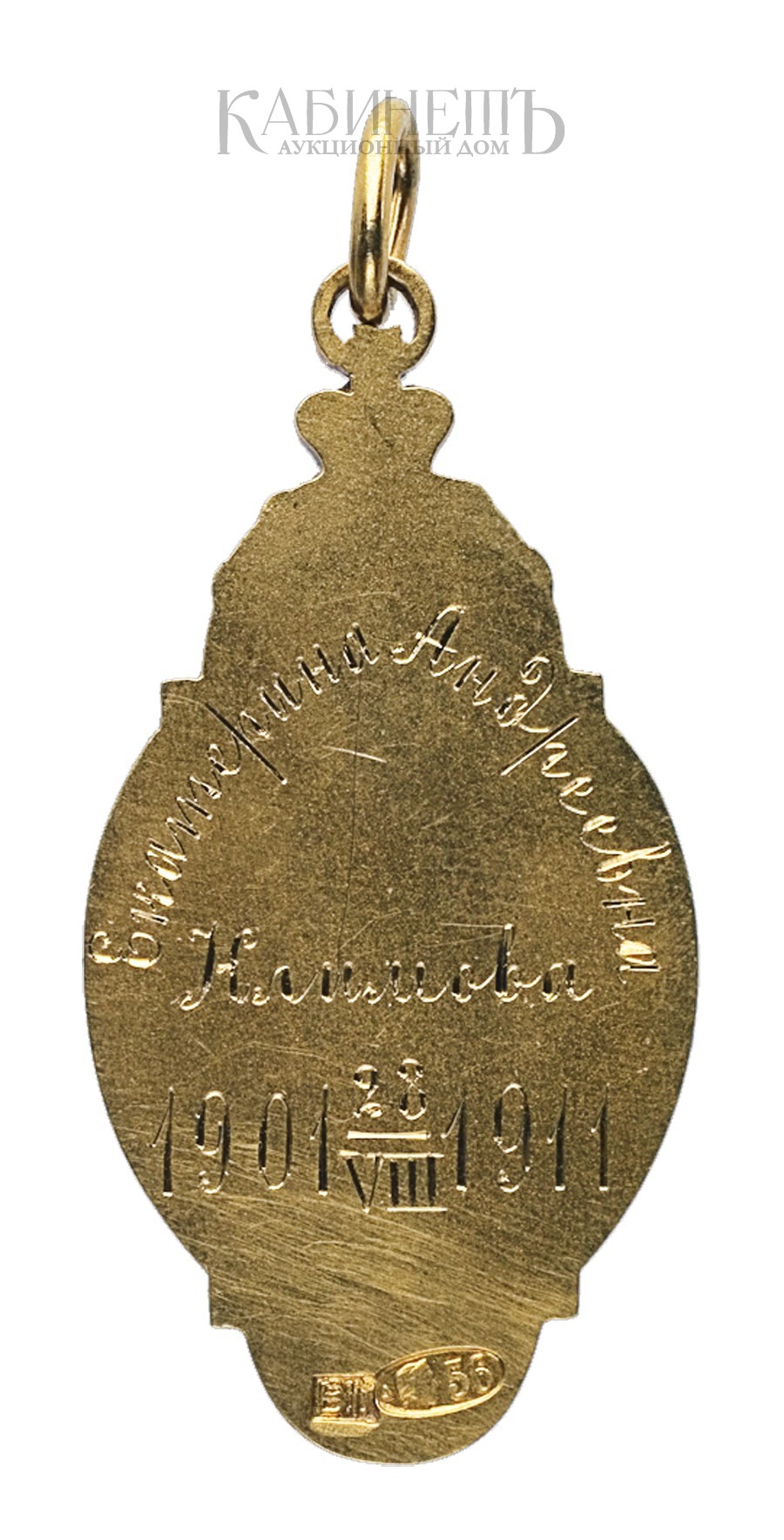 На оборотной стороне жетона гравированная надпись в три строки: «Екатерина Андреевна / Климова /1901 28/VIII 1911».