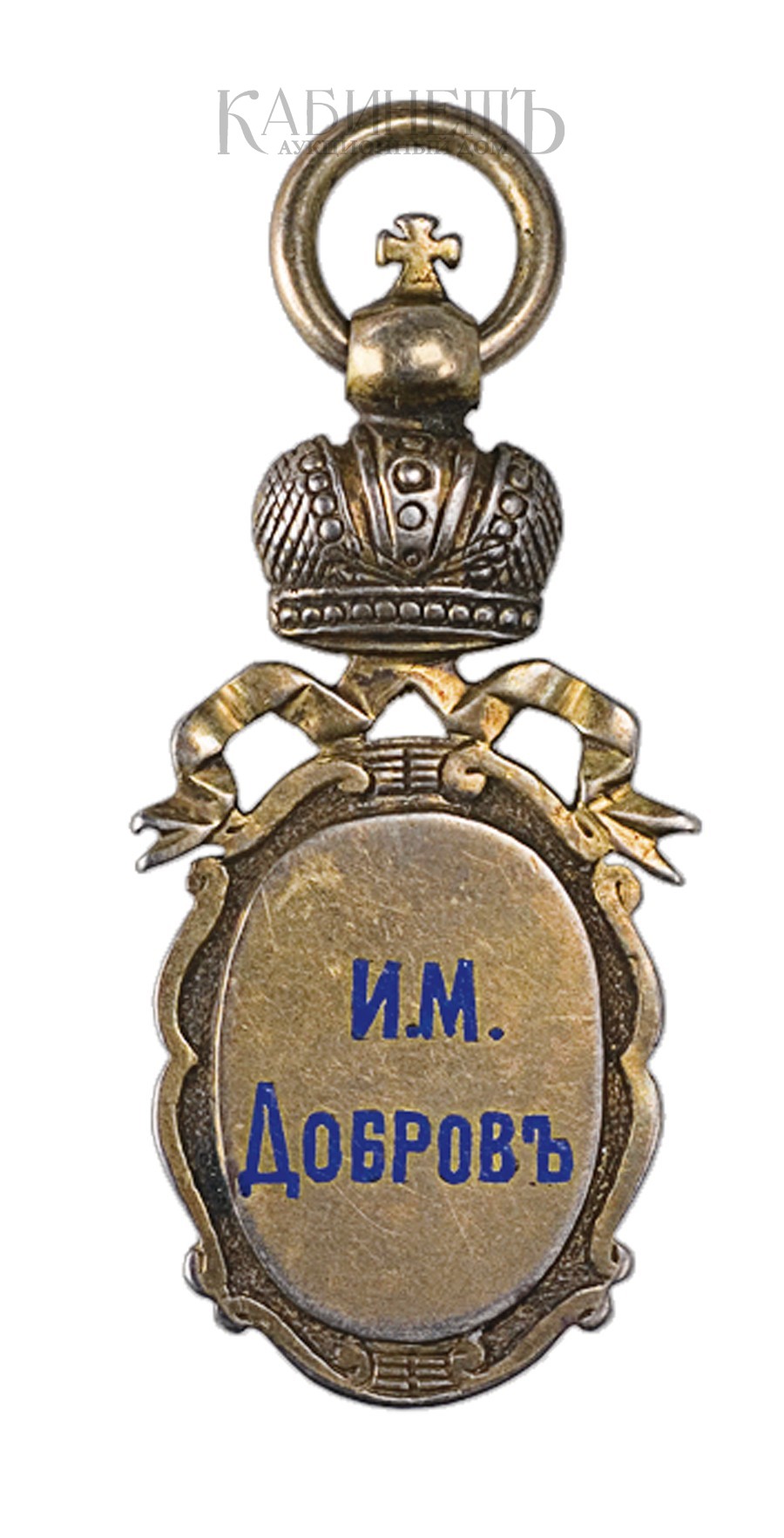 На оборотной стороне жетона надпись в две строки: «И. М./ Добровъ».