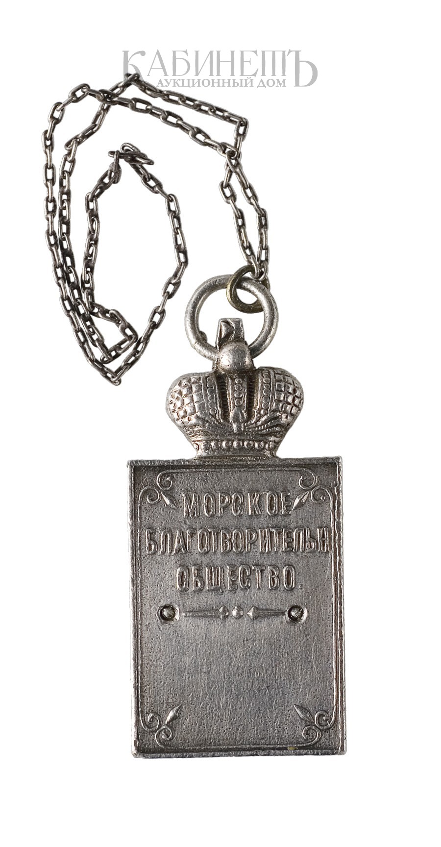 Морское благотворительное общество было организовано в 1891 г. и находилось под покровительством великой княгини Ксении Александровны. Серебряный жетон выдавался действительным членам общества и лицам, оказавшим содействие обществу. Золотой жетон получали почетные члены Общества и члены его Совета прослужившие в этом звании непрерывно в течение 3-х лет.
