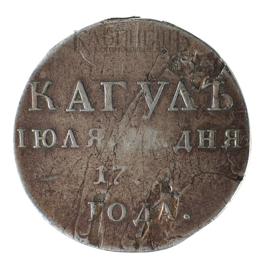 Медаль учреждена 23 сентября 1770 г. Медалью награждали солдат русской армии за победу над турецкой армией при реке и озере Кагул 21 июля 1770 г. На Санкт-Петербургском монетном дворе всего было изготовлено и выдано 19157 серебряных медалей. После смерти награжденных их возвращали в Военную коллегию, а затем сдавали на переплавку.