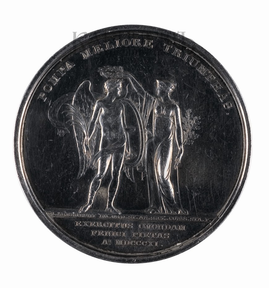 На реверсе медали под фигурами в линии обреза надпись: «C.LEBERECHT EQ.ORD.ST.AN.2