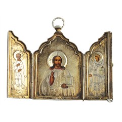 Складень «Христос Вседержитель с предстоящими – Иоанном воином и архангелом Михаилом»