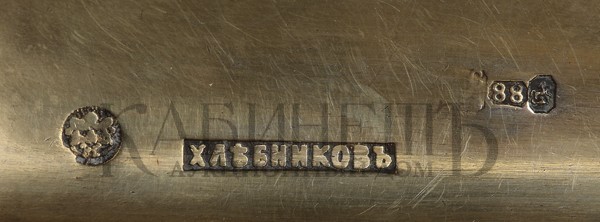 Клейма: пробирное «88»; клеймо г. Москва, развернутое фирмы «Хлебниковъ» под государственным орлом.
