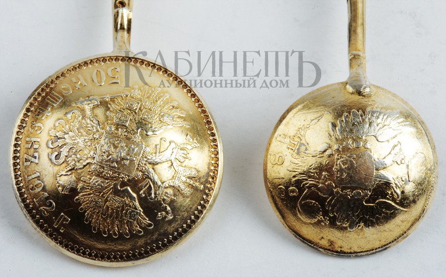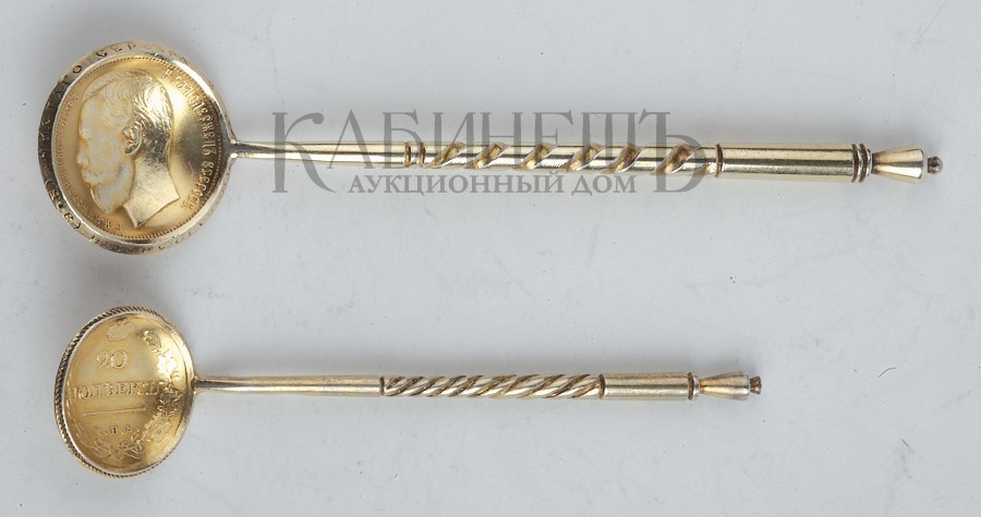 Две ложки: из монеты Российской империи достоинством 50 копеек 1912 года и из монеты Российской империи достоинством 20 копеек 1818 года