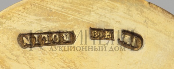 Клейма: пробирное «84», с клеймом г. Москвы; инициалы пробирного инспектора «А(?)» с датой «1889», развернутое клеймо формы «BOLIN».