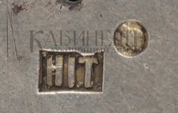 Клейма: пробирное «84» с клеймом г. Москвы в виде лопатки; в прямоугольном щитке именник мастера; именник «НIТ».