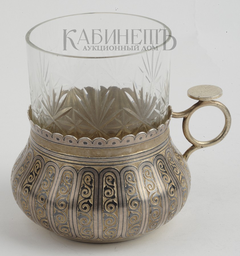Россия. Частная мастеская. 1867 г.Высота: 5 см. Диаметр: 7 см. Вес: 145,85 г.Серебро, позолота, чернь.