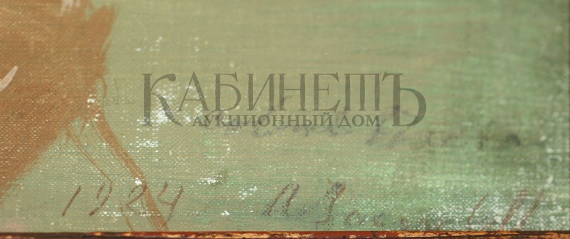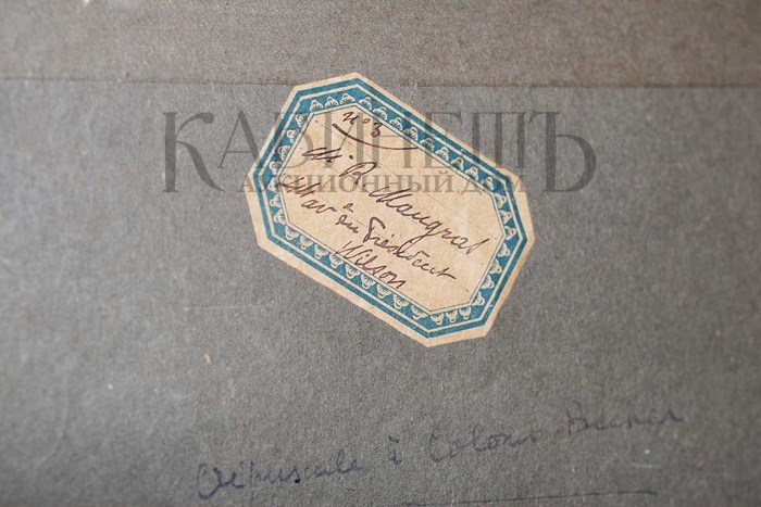 На оборотной стороне этикетка собрания коллекционера, которому ранее принадлежала работа и авторская надпись: