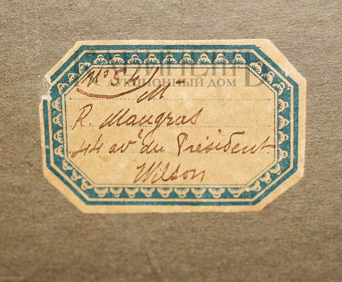 На оборотной стороне этикетка собрания коллекционера, которому ранее принадлежала работа.