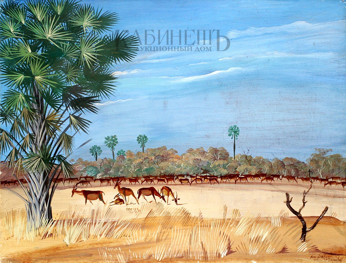 <...> Вечером мы вернулись в лагерь. У каждого была удачная охота. Несколько видов антилоп было запечатлено на картине: