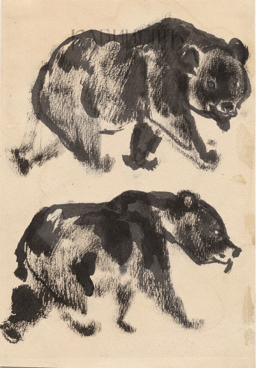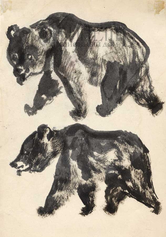 Вторая половина 1920-х гг. Бумага, черная акварель 21,9 х 15 см На обороте изображены те же медвежата в зеркальном отображении. Экспертное заключение Силаева В.С. от 31 августа 2004 г.