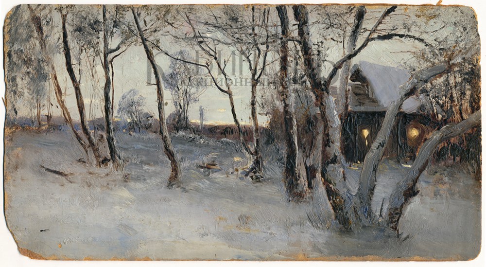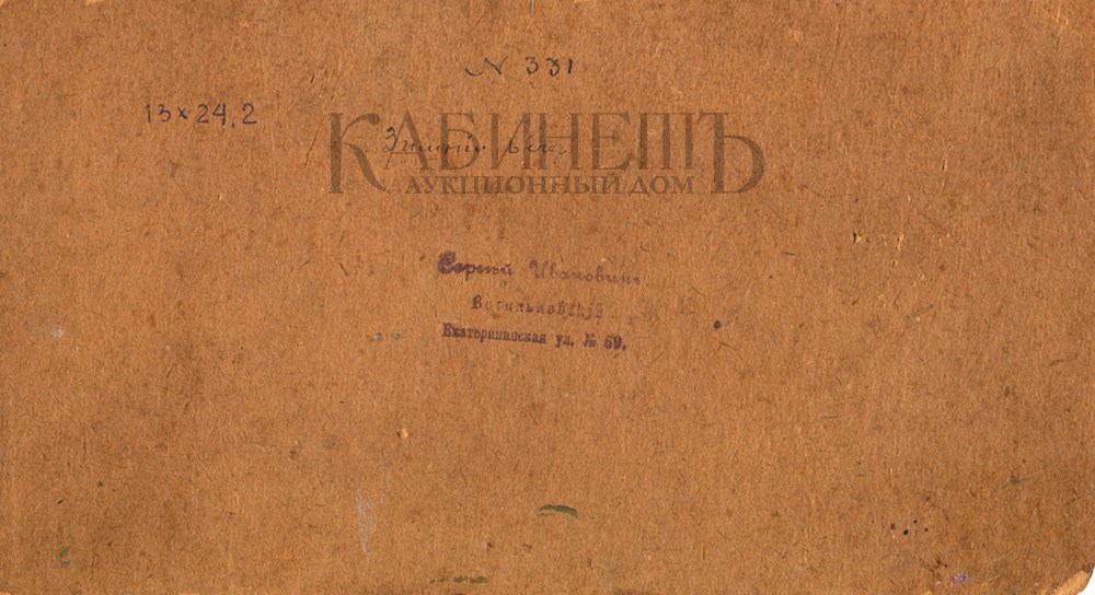 «Сергей Иванович / Васильковскiй / Екатерининская ул. № 69.», а также тушью пером номер: «№ 331» и название картины «Зимний вечер».