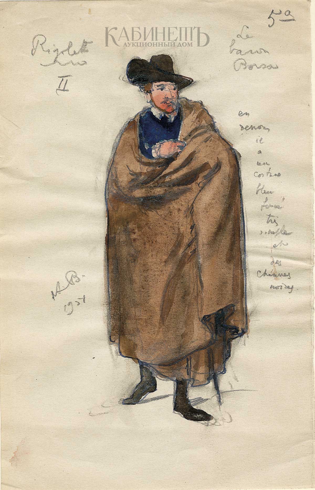 Слева вверху надпись графитным карандашом на французском языке: «Rigoletto/ II», справа – «5а/Le/ baron Borsa». Слева внизу авторские инициалы и дата: «А.В./ 1954».