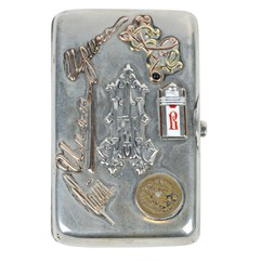Россия, Санкт-Петербург,последняя четверть XIX в.Серебро, эмаль, кабошон, красное и желтое золотоВес: 125,65 г9,6 х 6,1 х 1,9 см