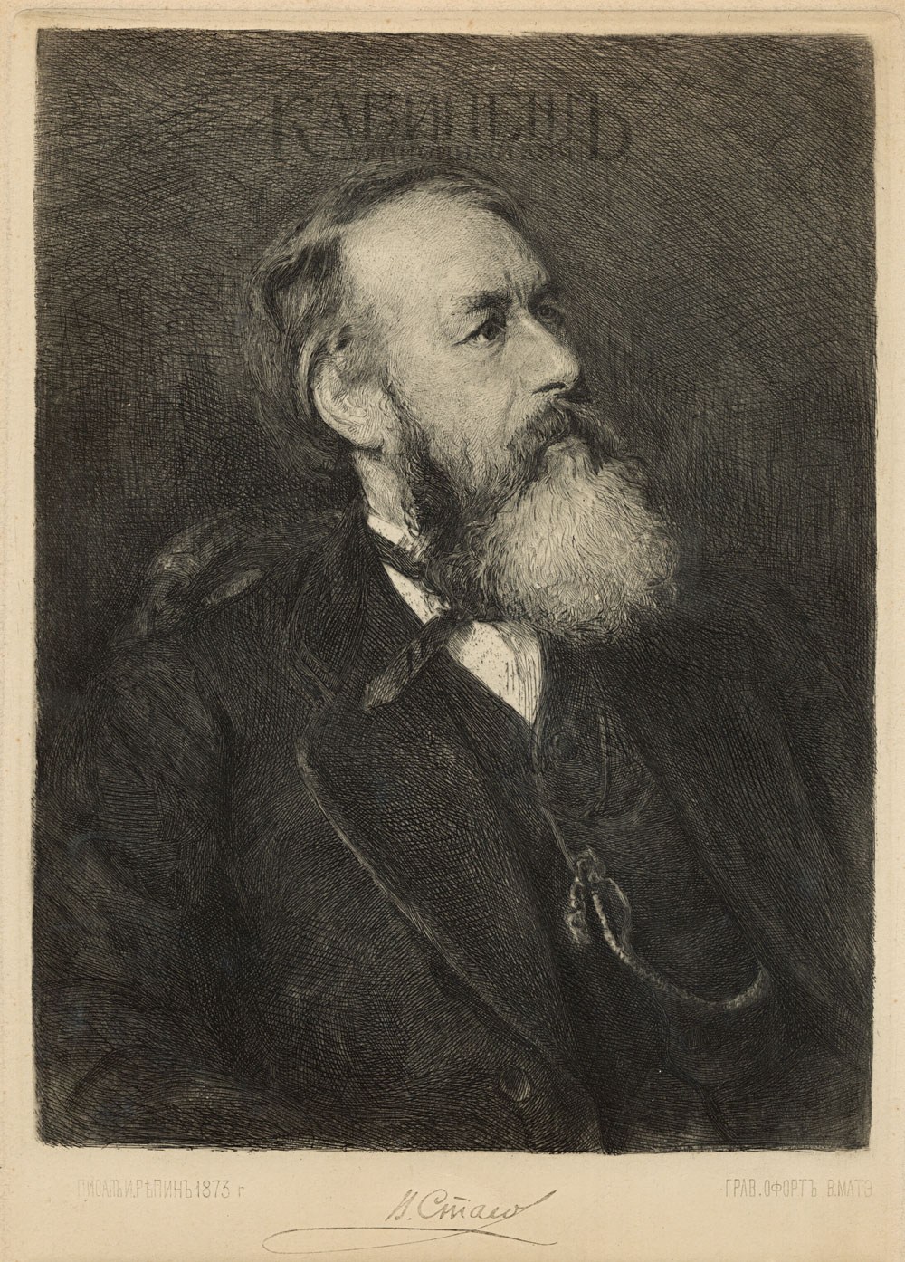 Слева внизу надпись: «ПИСАЛЪ И.РЕПИ НЪ 1873 г.», по центру подпись: «В.Стасов», справа: «ГРАВ . ОФОРТЪ В.МАТЭ».