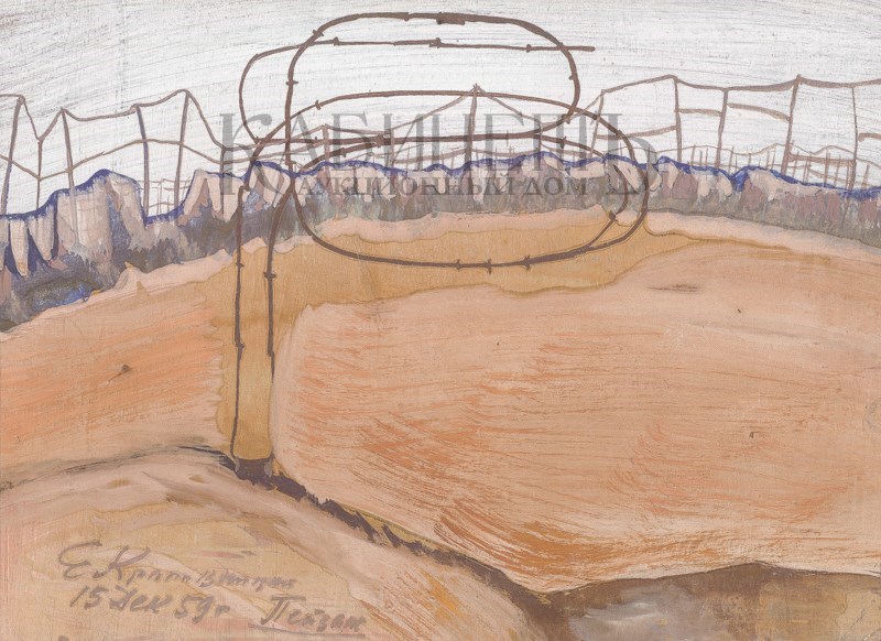 Слева внизу подпись, дата и название: «Е. Крапивницкий/ 15 дек 59 г Пейзаж».