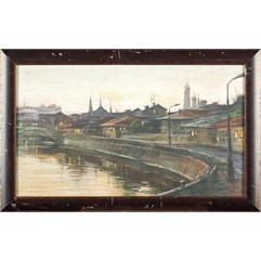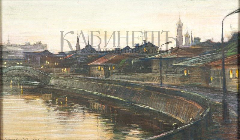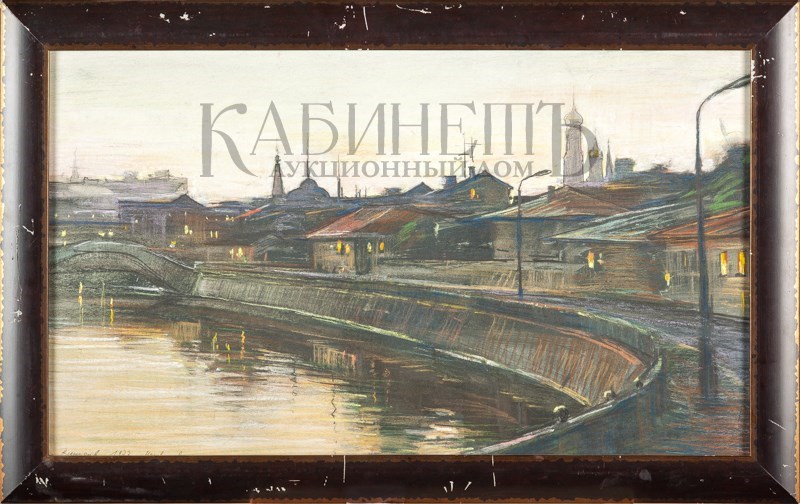 Слева внизу подпись, дата и название: «Вишняков 1972 Москва, Яуза». Оформлена в современную раму.