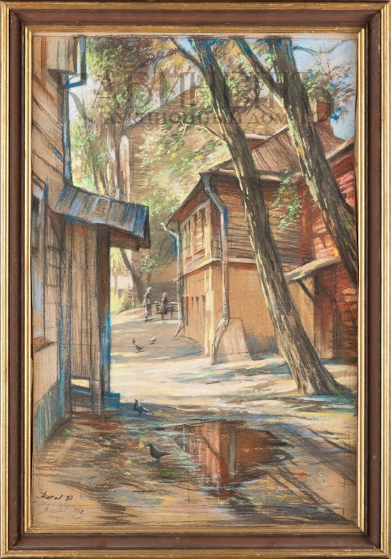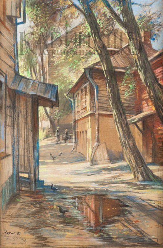 Слева внизу подпись, дата и название: «Вишняков 80/ Двор на Сретенке/ Вишняков 80/ Старая Москва»