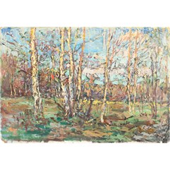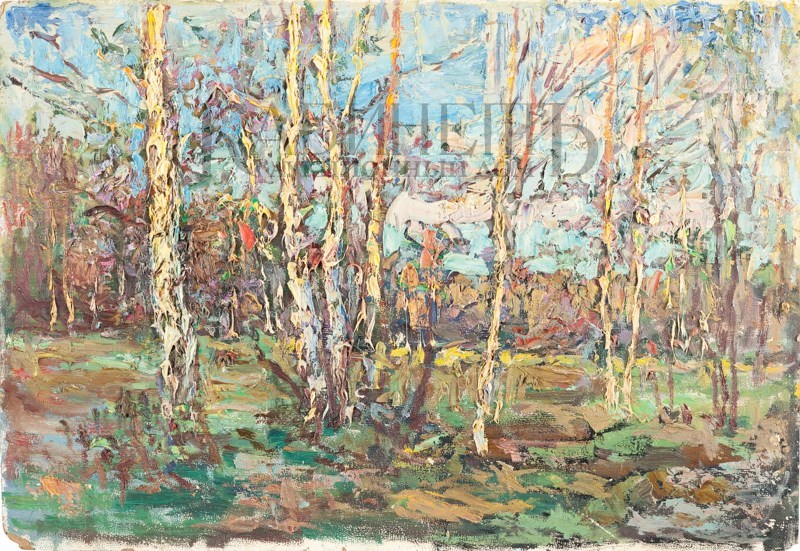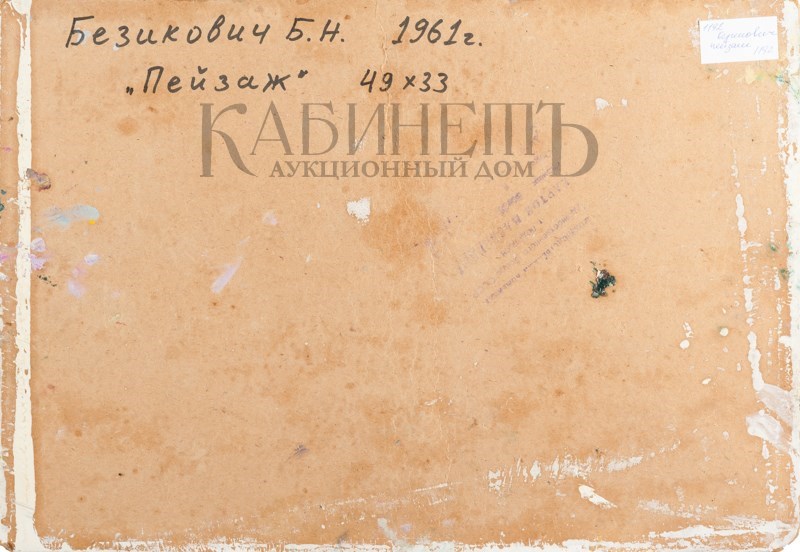 На обороте надпись: «Безикович Б.Н. 1961 г./ «Пейзаж» 49 х 33»,