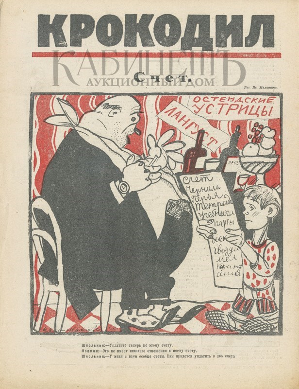 К карикатуре прилагается экземпляр журнала «Крокодил» № 2 (32) за 1923 г.