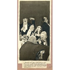 Елисеев Константин Степанович (1890–1968) – график, театральный художник. Заслуженный деятель искусств РСФСР (1945). В 1910–1914 гг. учился в Рисовальной школе Общества поощрения художеств у И. И. Творожникова, Ф. Ф. Бухгольца, А. А. Рылова, И. Я. Билибина и др. Рисовал карикатуры для газет и журналов: «Речь», «Петербургский журнал». В 1911–1917 гг. работал актером и оформителем фойе в петроградских театрах «Троицкий» и «Литейный». В 1918, 1922–1923 гг. занимался во ВХУТЕМАСе. Автор карикатур для изданий: «Гудок» (1922–1968), «Прожектор» (1923–1935), «Бегемот» (1924–1928), «Крокодил» (1924–1968), «Фронтовой юмор» (1941–1945). В 1959– 1961 гг. – руководитель студии карикатуристов при журнале «Крокодил». В 1938 г. был художником по костюмам на съёмках фильма «Александр Невский» C. М. Эйзенштейна. Персональные выставки проходили в Москве (1948, 1951, 1968), Минске (1952), Ярославле (1954). Работы художника находятся во мно- гих региональных музеях и частных коллекциях.
