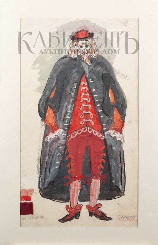 Представленные к продаже на аукцион эскизы театральных костюмов Р.Р. Фалька по качеству исполнения и размеру не имеют аналогов и ранее на художественном рынке не выставлялась.