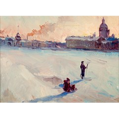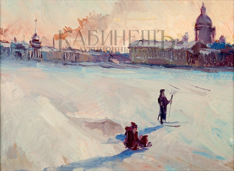 На оборотной стороне по центру коричневым карандашом надпись: «Янв. 51 г. Ленинград». Оформлена в современную раму.