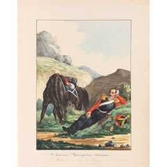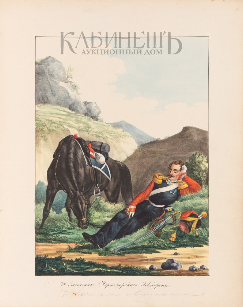Лист из альбома «Собрание мундиров Российской Императорской Армии» к многотомному изданию А.В. Висковатова «Историческое описание одежды и вооружения Российских войск».
