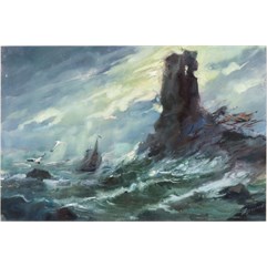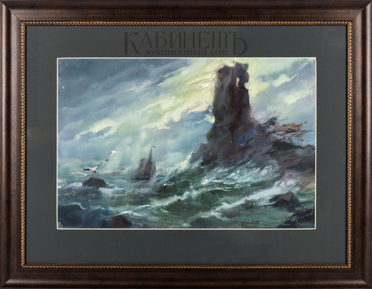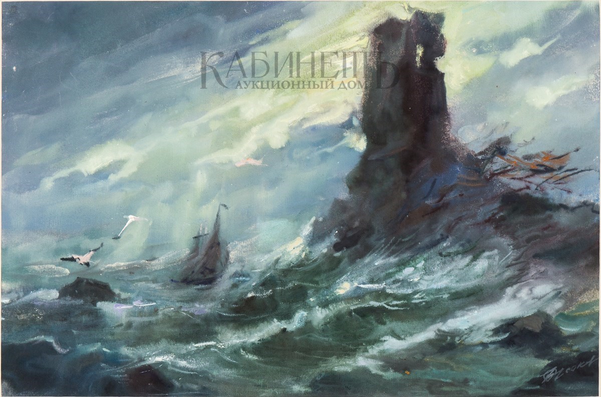 Русаков Светозар Кузьмич (1923–2006) Морской пейзаж с парусником в бурю