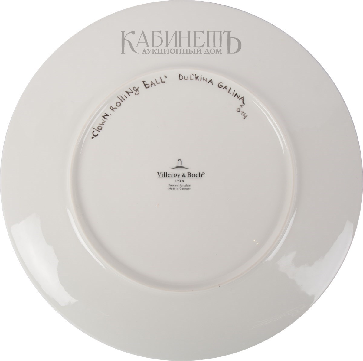 На обороте авторские название, подпись и дата: «Clown. Rolling BaLL» DuL’kinA GaLinA/2/014.» и клеймо фирмы-производителя.