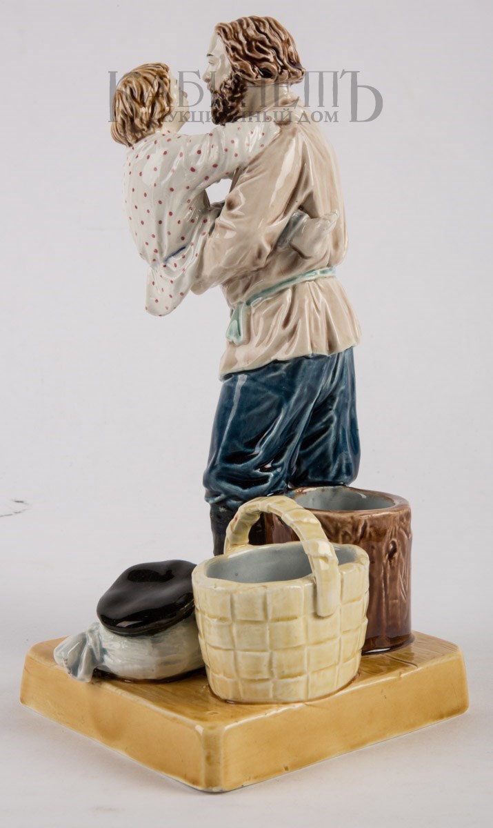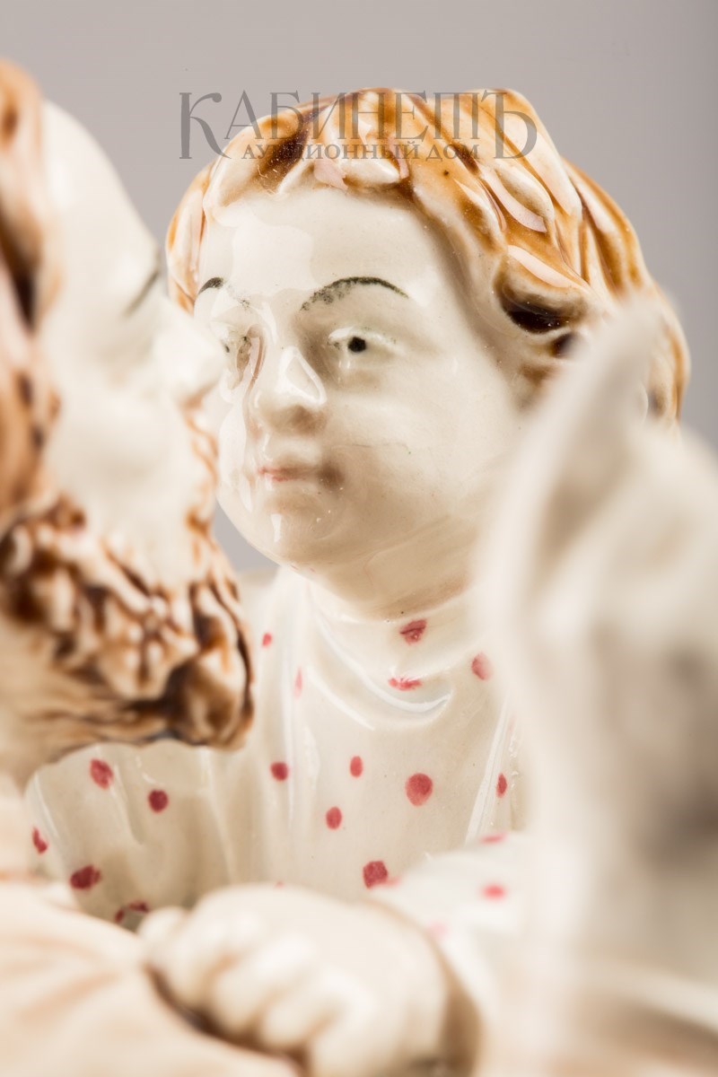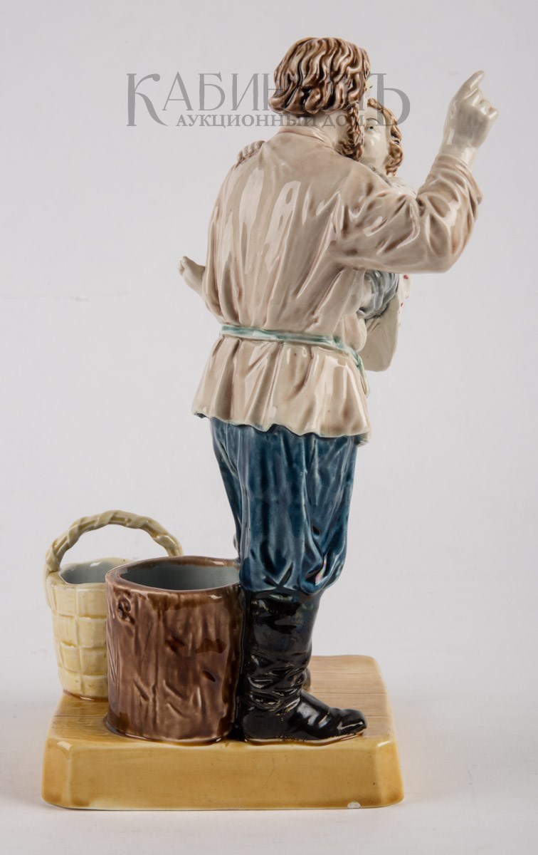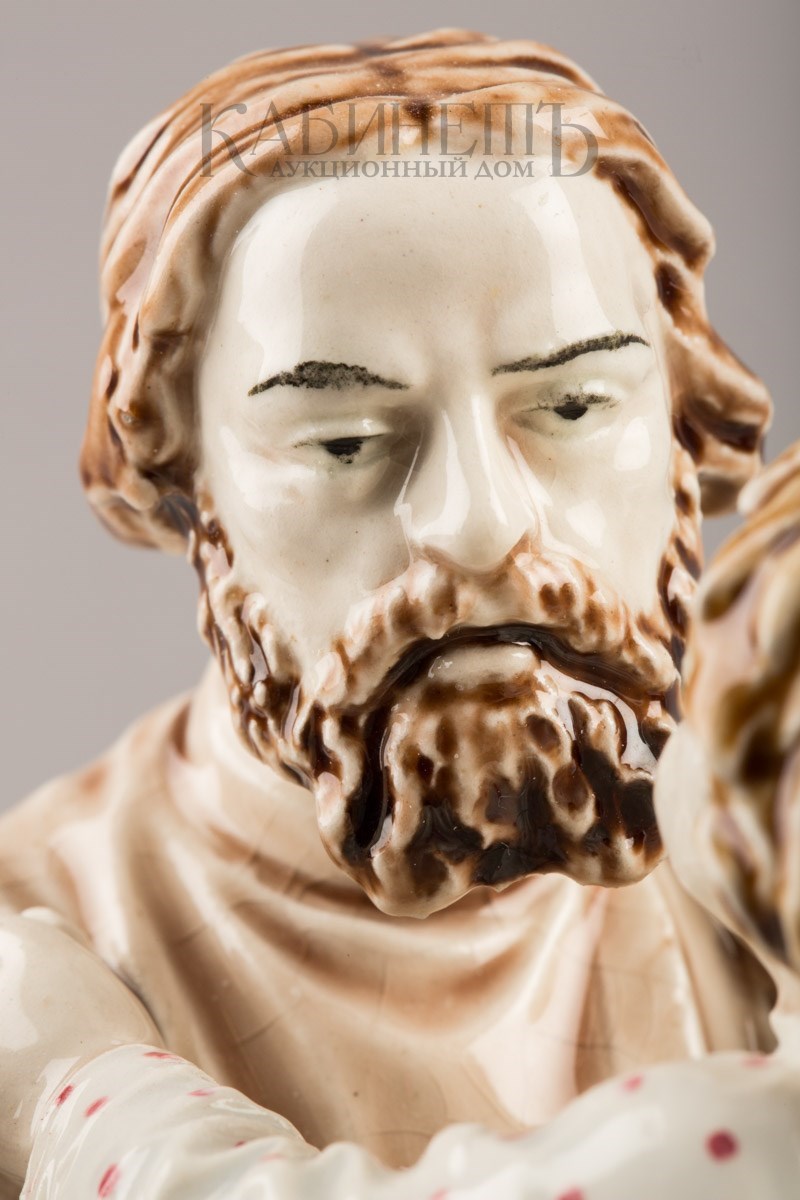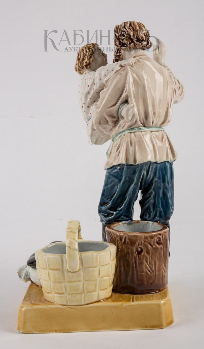 Фаянс, роспись подглазурная, полихромная Марки: в тесте – надпись «М.С. Кузнецова », номер «145» и «49». Очень редкая фигура.