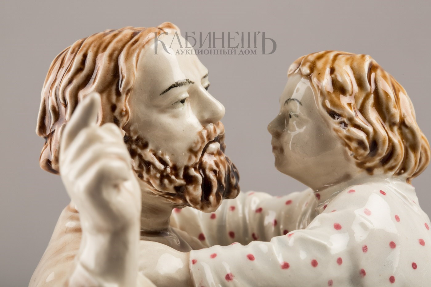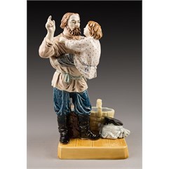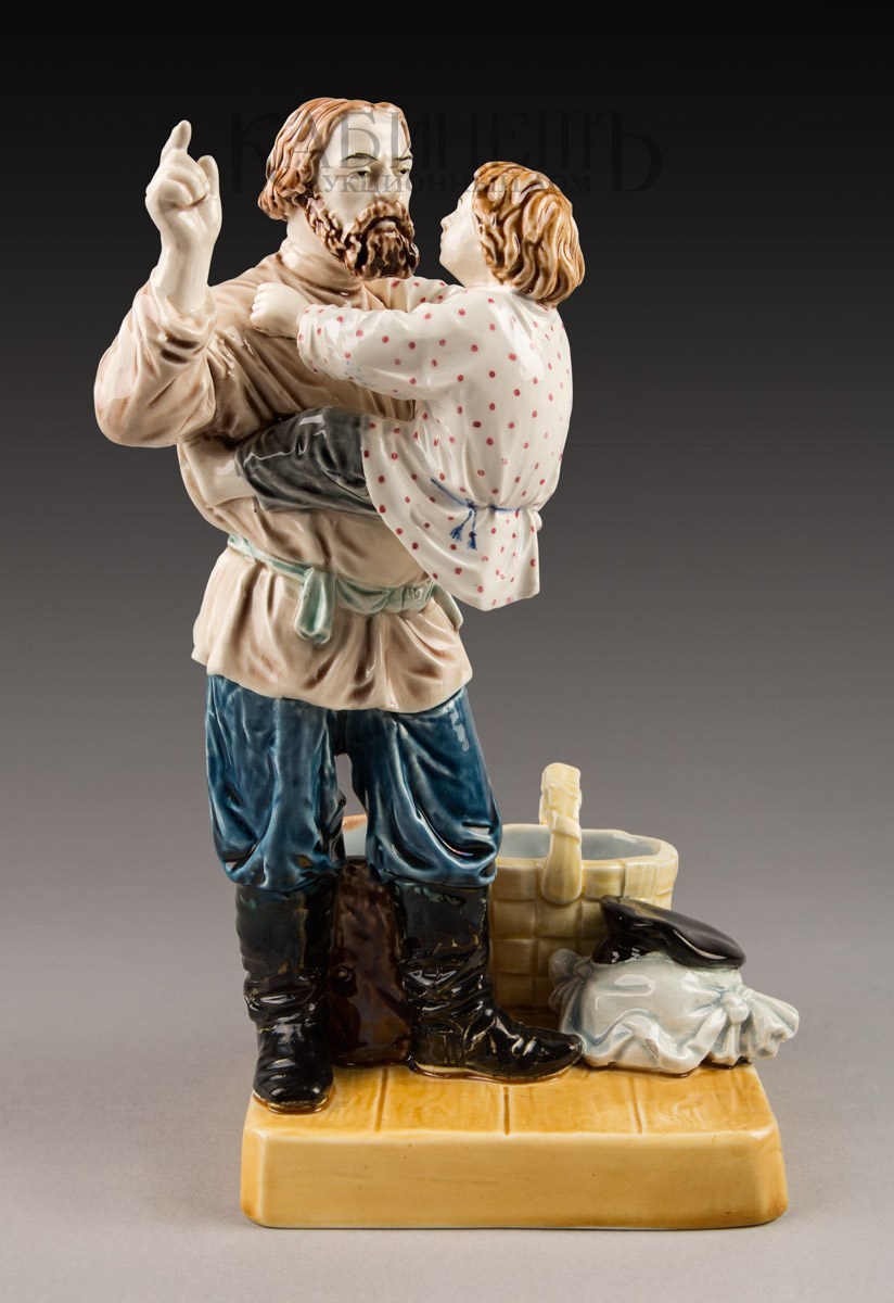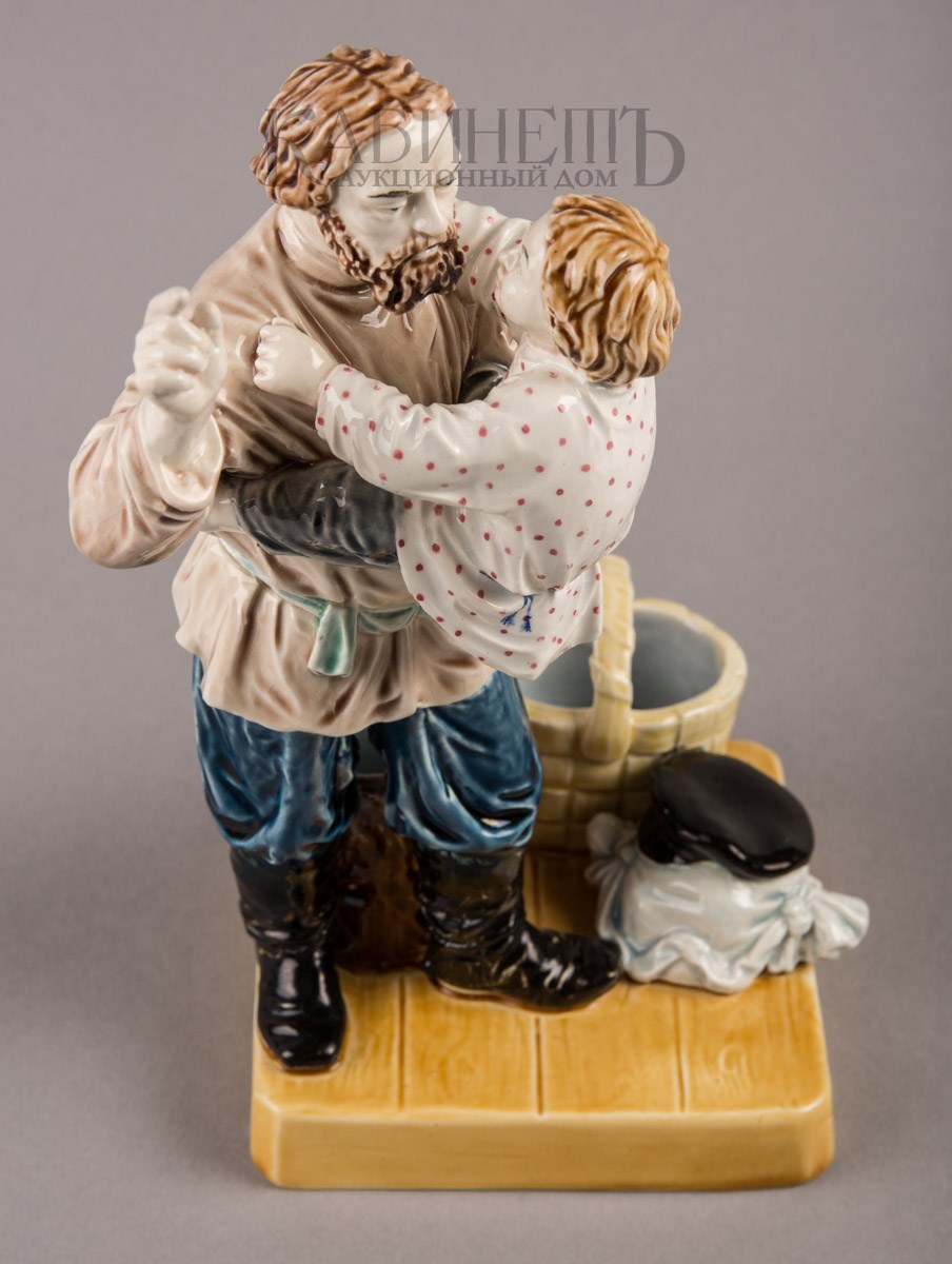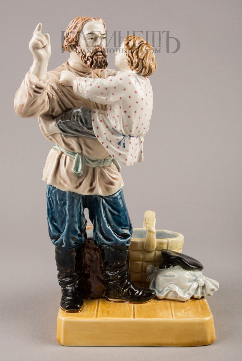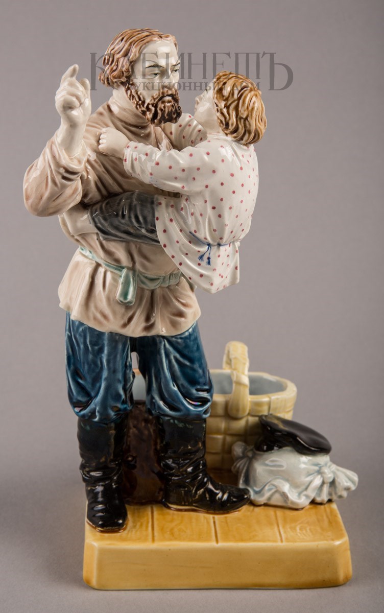Фаянс, роспись подглазурная, полихромная Марки: в тесте – надпись «М.С. Кузнецова », номер «145» и «49». Очень редкая фигура.
