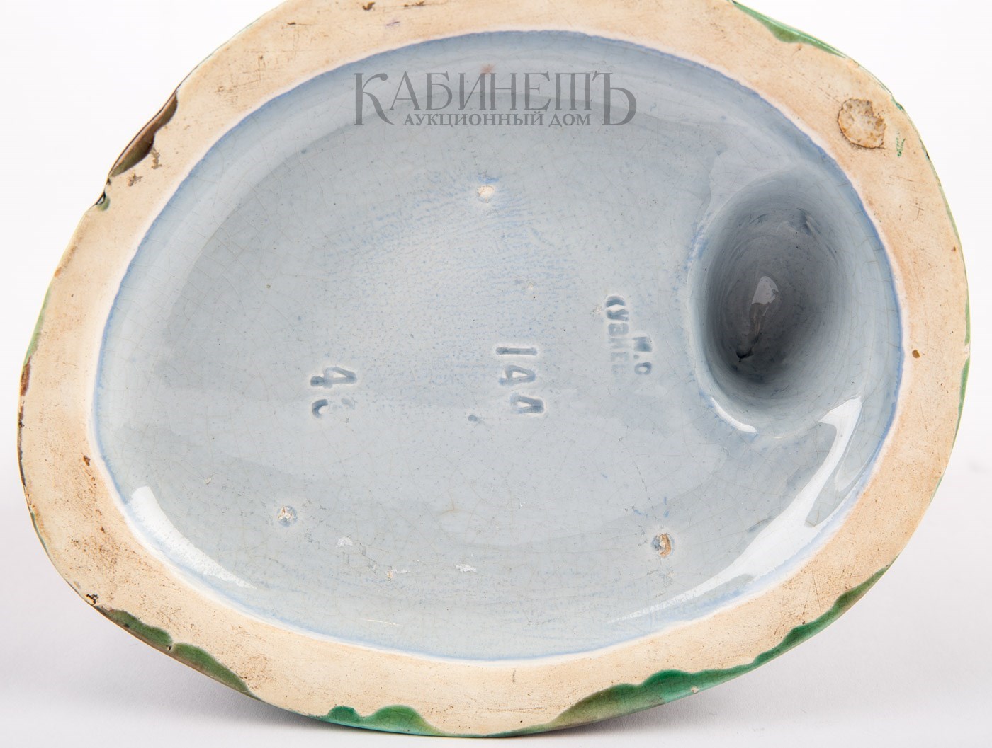 Фаянс, роспись подглазурная полихромная Марки: в тесте – надпись «М.С. Кузнецова », номер «144» и «43». Незначительные сколы.