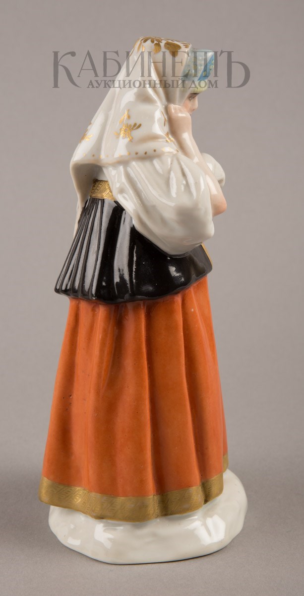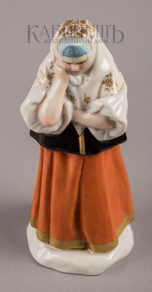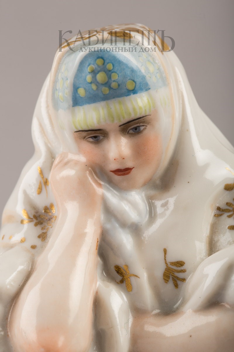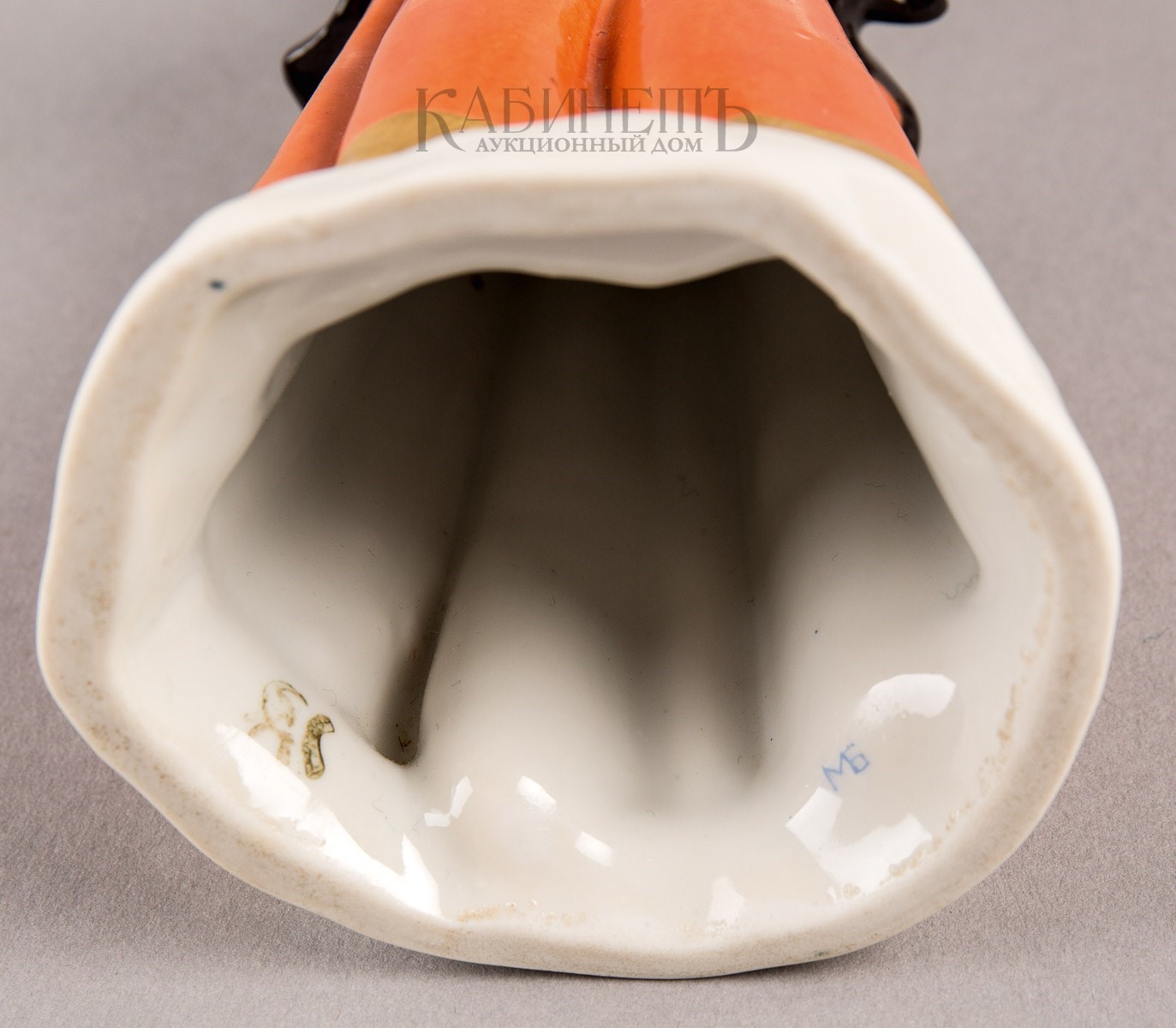 Марка: по бисквиту – зеленая марка в виде серпа и молота, надглазурные инициалы художника «МБ» (Мария Брянцева).