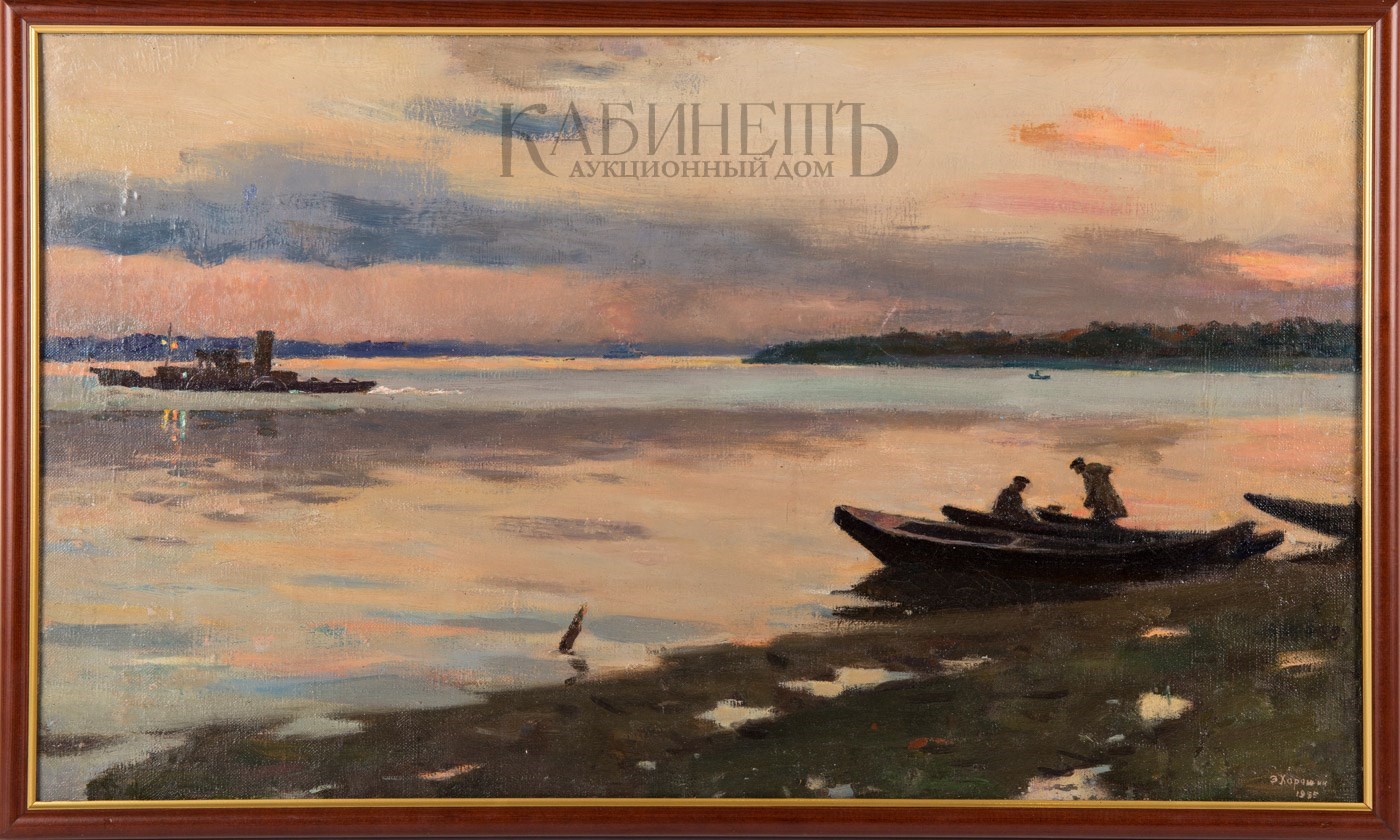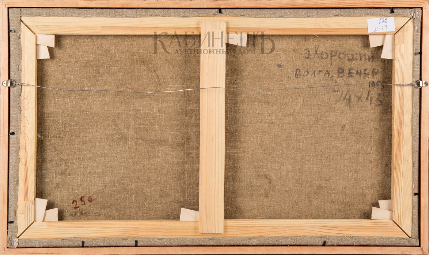 Справа внизу подпись и дата: «Э. Хороший/ 1955». На оборотной стороне справа вверху надписи. Кромки холста подведены. Оформлена в современную раму.