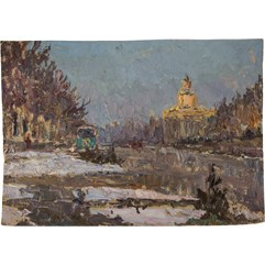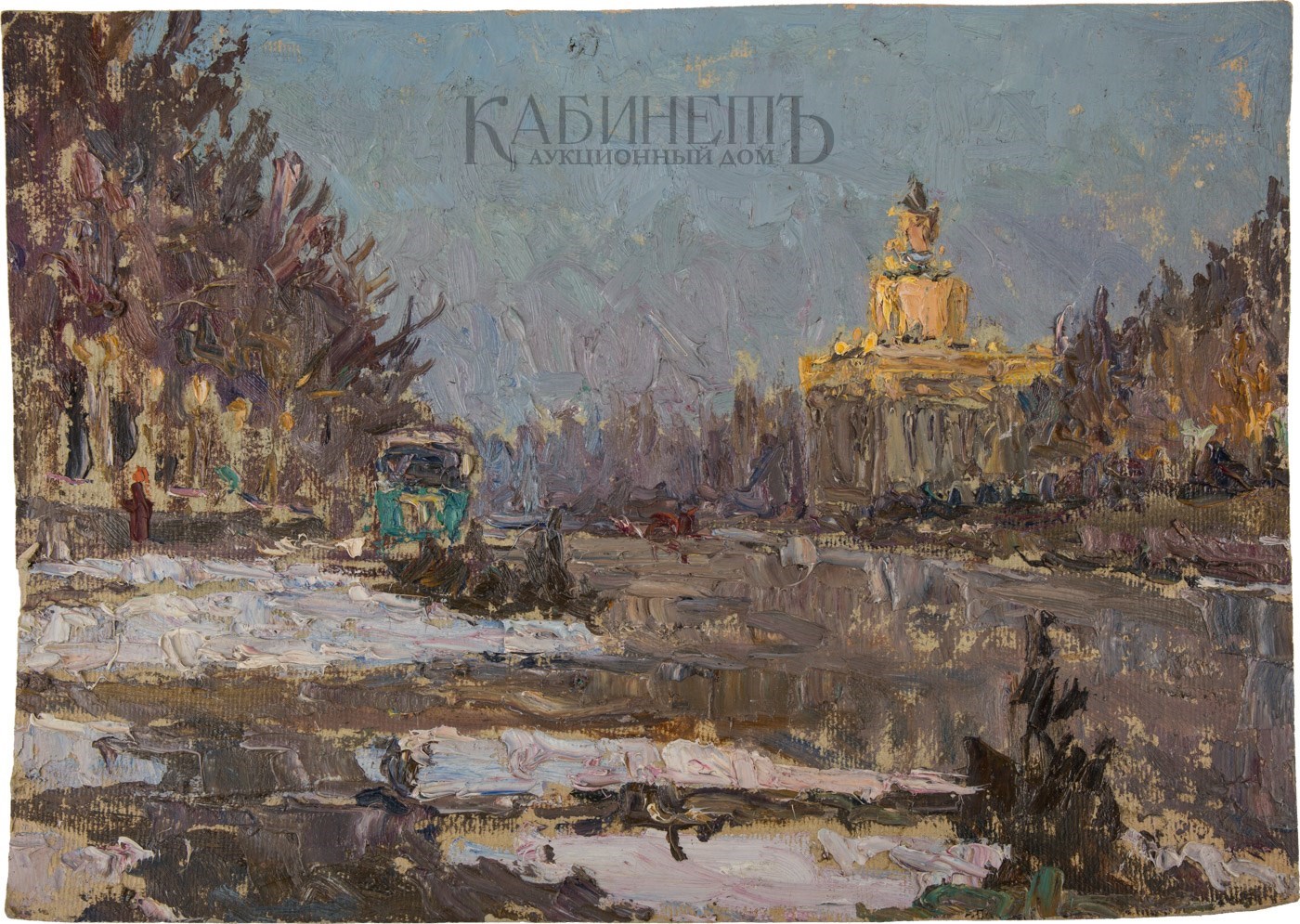 На оборотной стороне в верхней части надпись: «Безикович Б.Н./ «На улице Фрунзе» 1961/ 27 х 37».