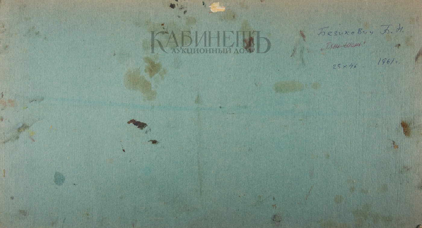 На оборотной стороне справа вверху надписи: «Безикович Б.Н./ «Тянь-Шань»/ 25 х 46 1961 г.».