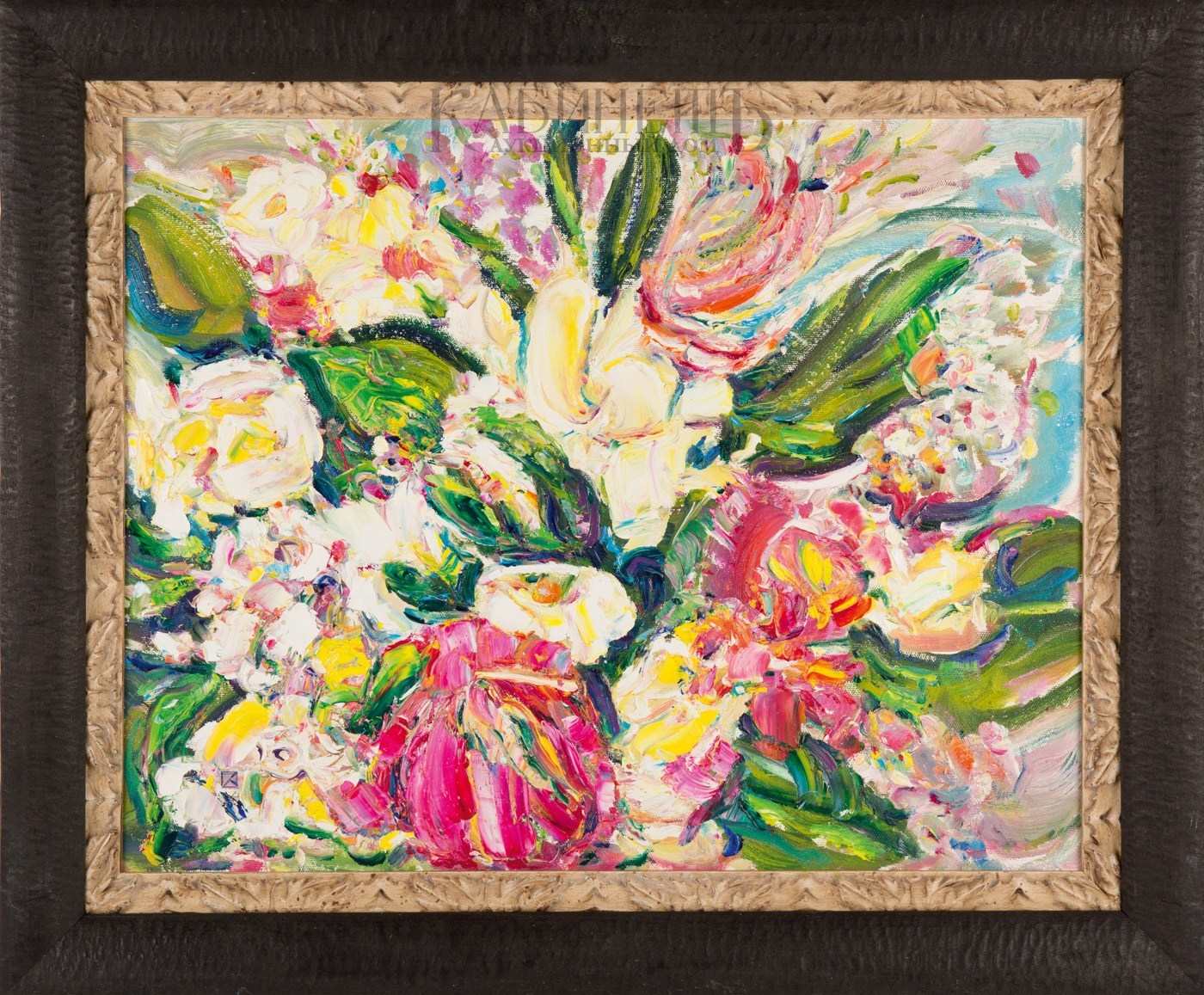 На оборотной стороне слева вверху авторская надпись: «853/ Кормышев Игорь/», далее монограмма, дата и название: «14/ Ласкающий цвет».