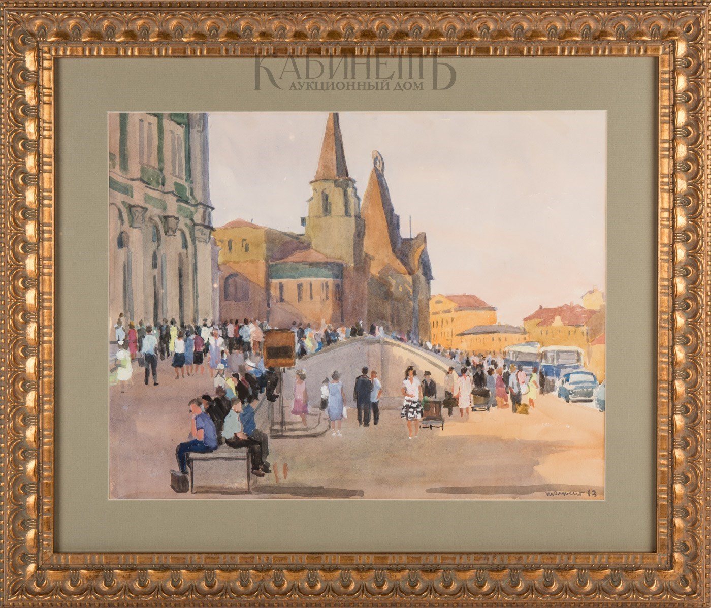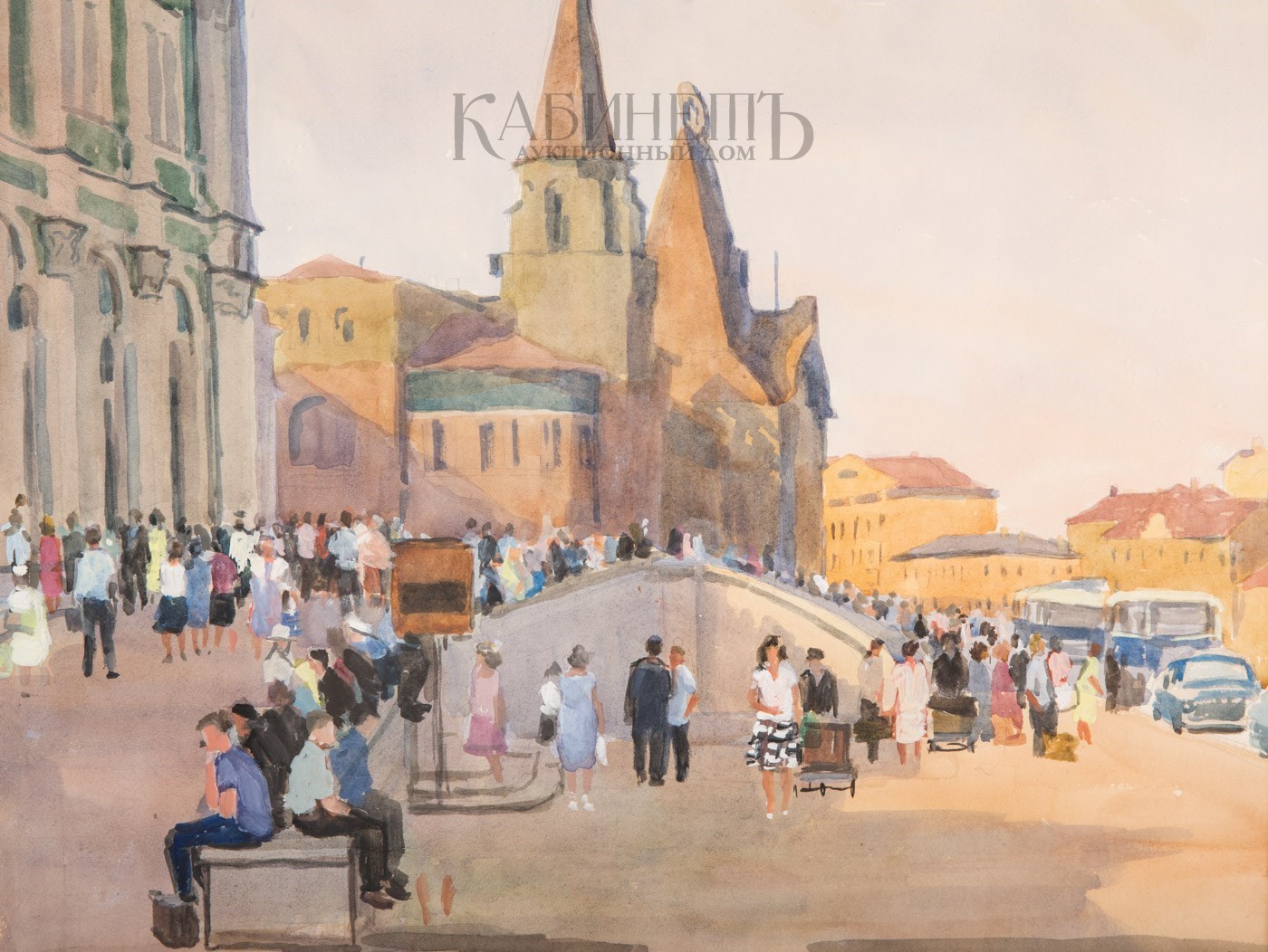 На оборотной стороне в нижней части графитным карандашом авторская подпись: «ККупецио/ Комсомольская площадь 1966 г./ 40 х 50».