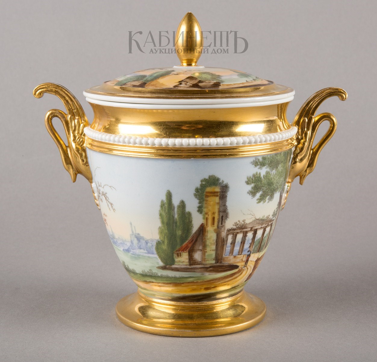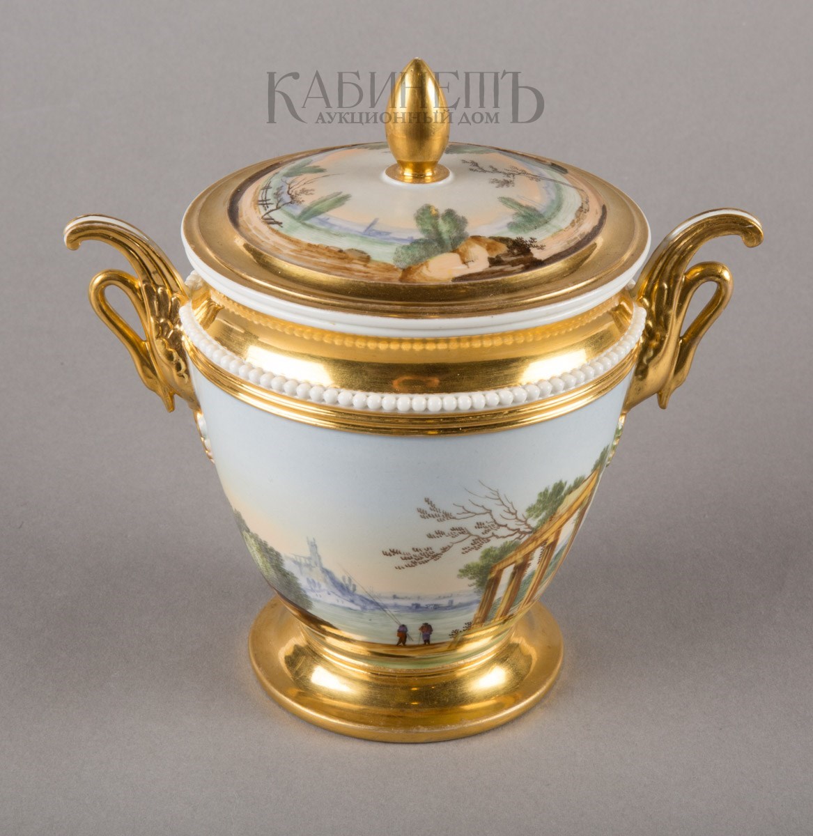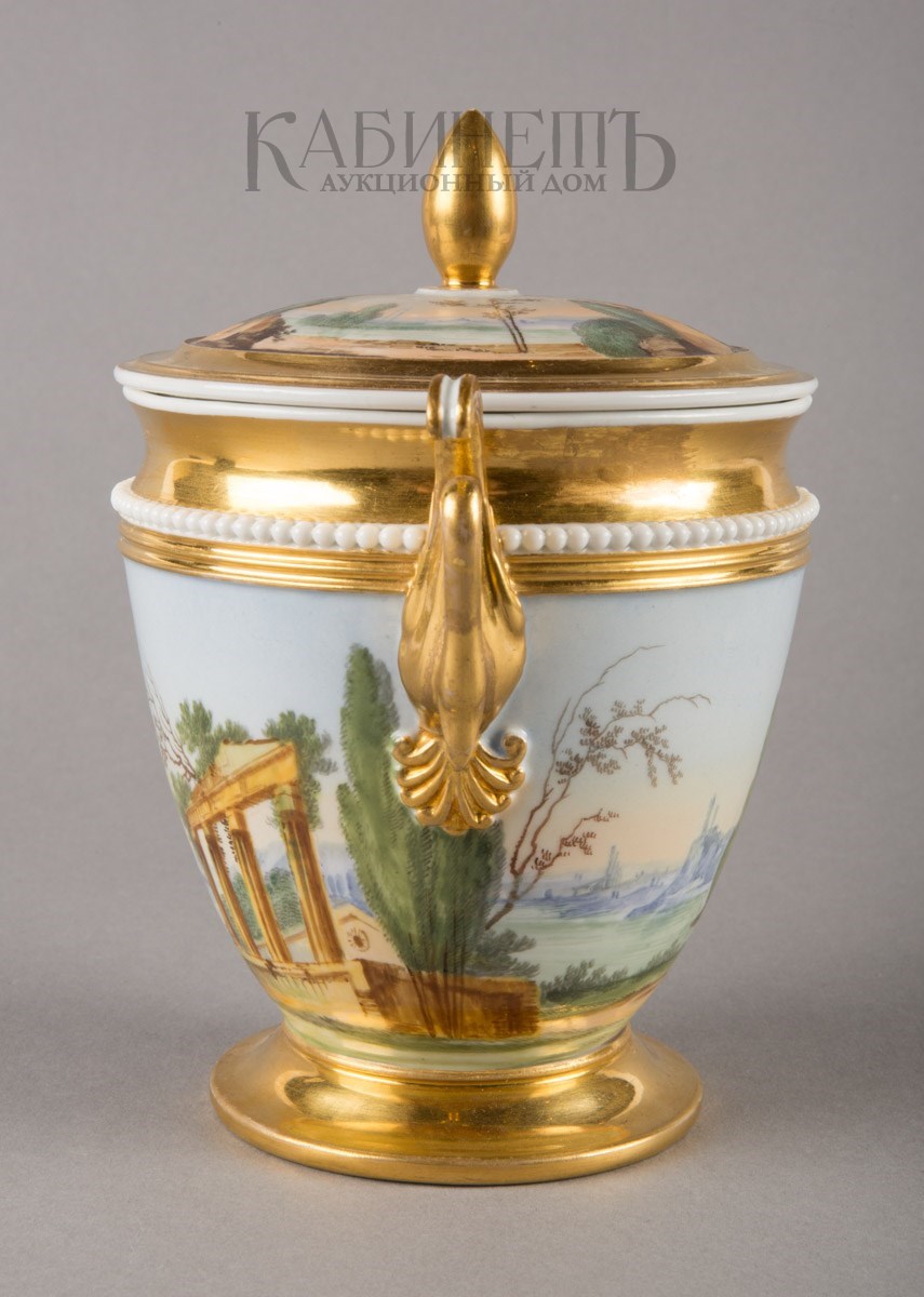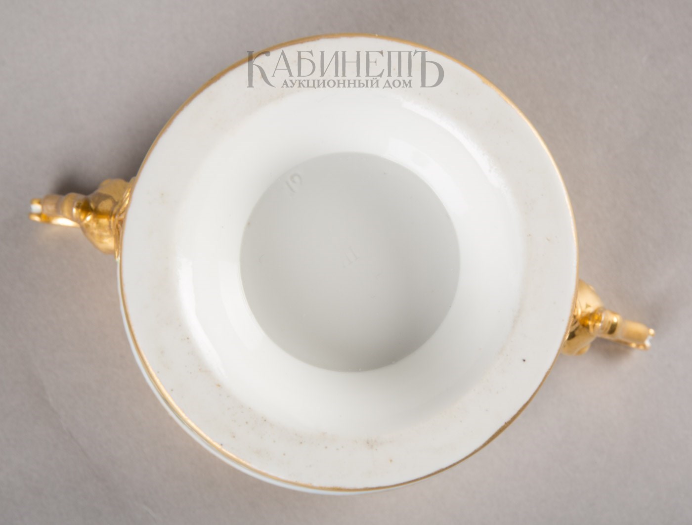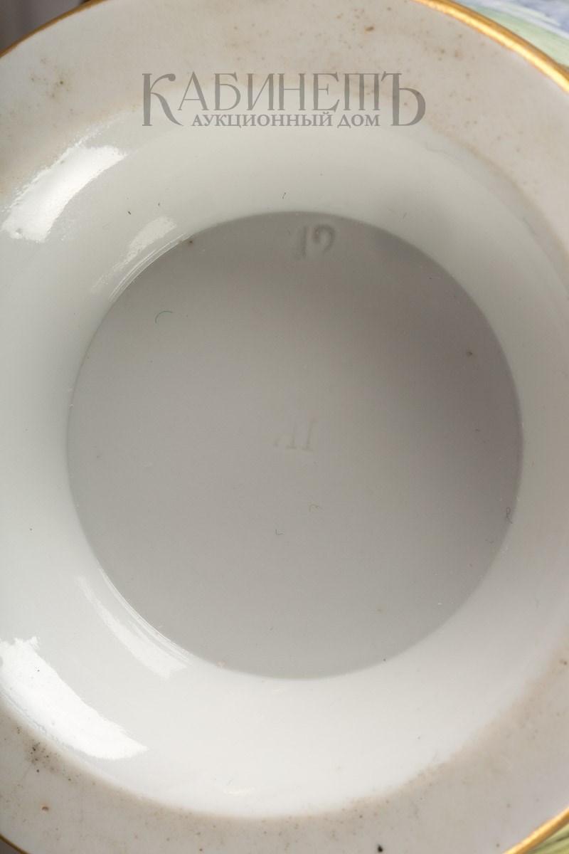 Фарфор, роспись полихромная надглазурная, золочение Марки: в тесте «АП» и номер «19».