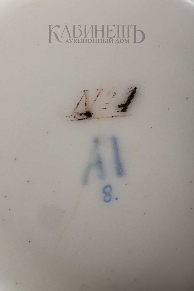 Марки: подглазурная синяя «АП» и цифра «8.»; надглазурная «№ 1».
