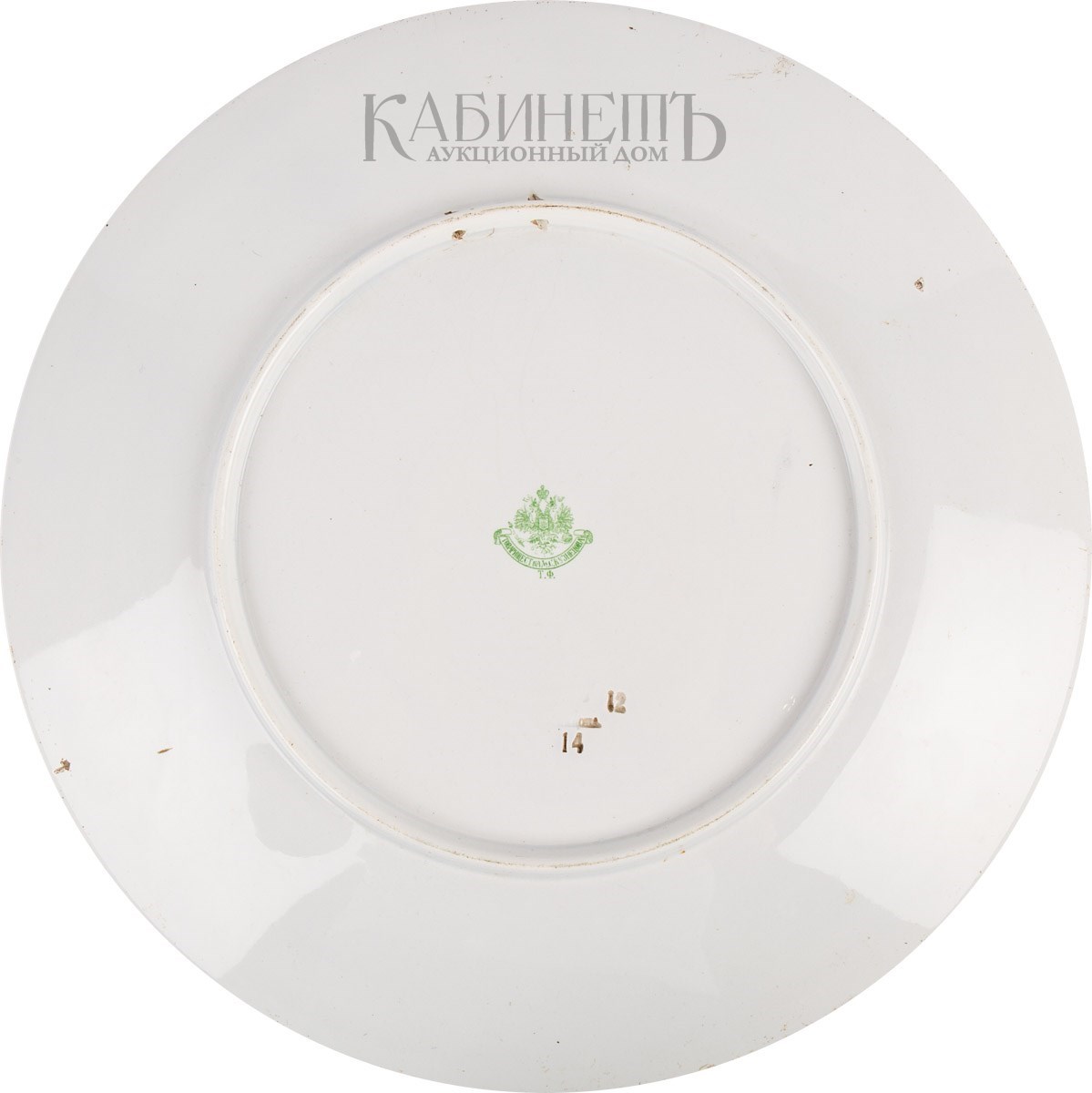 Фаянс, живопись надглазурная Марки: надглазурная марка завода; в тесте «Кузнецова» и цифры: «12» и «14».